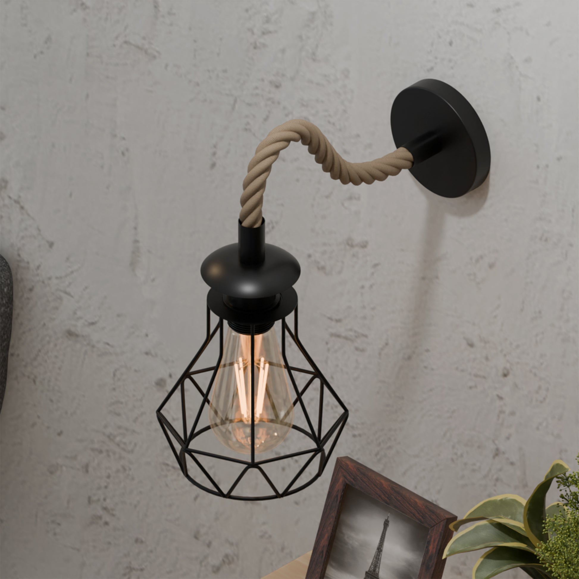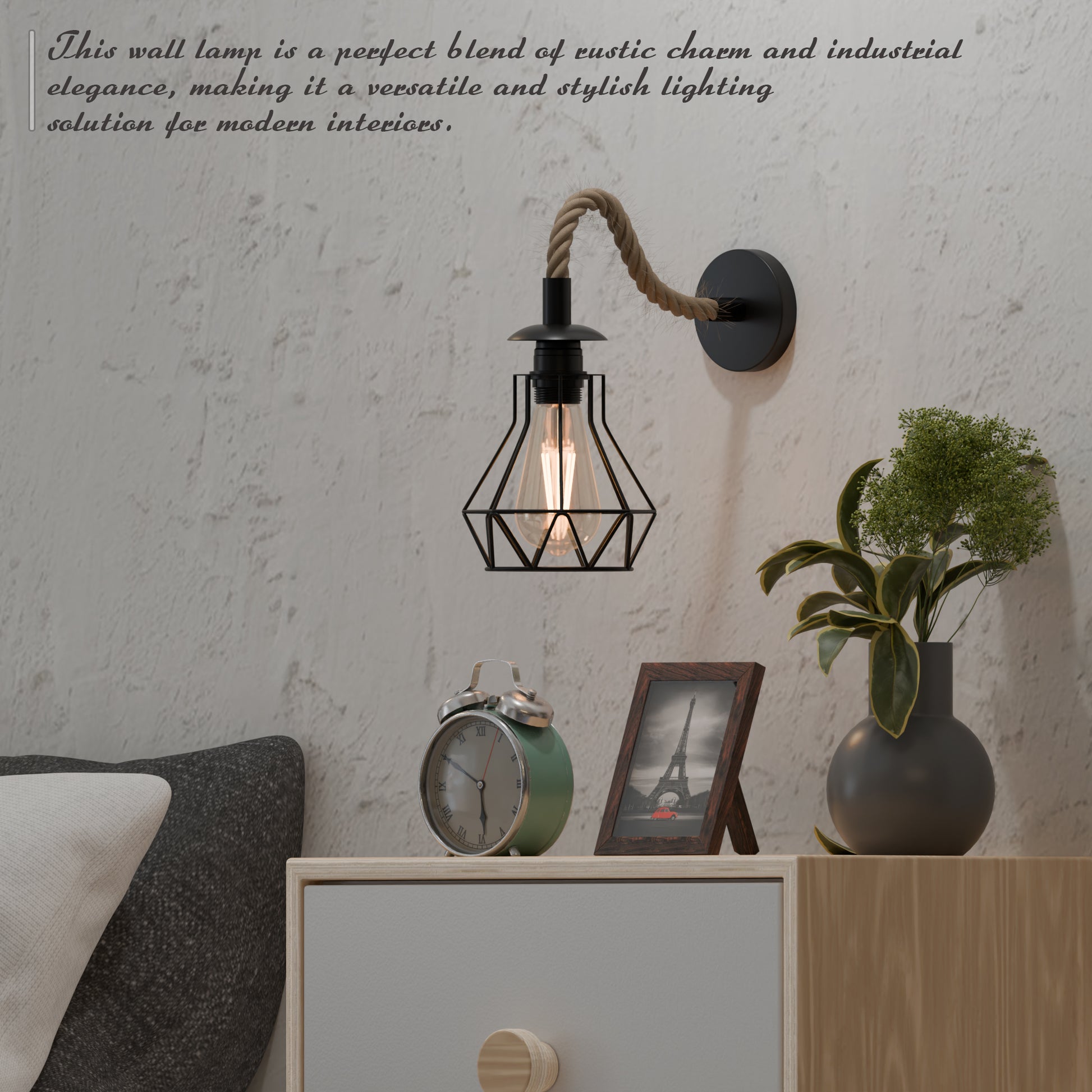 - 1 x Hemp rope Wall lamp (Bulb is Optional)