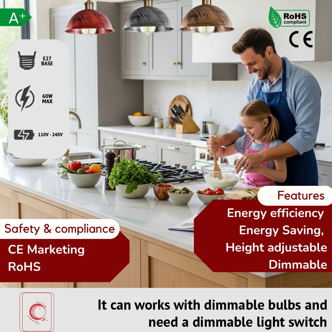 Lamp Compatibility: Features an E27 lamp holder, allowing you to use any E27 light bulbs.