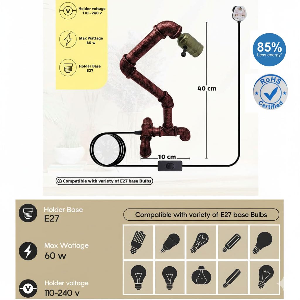 1 × Industrial Water Pipe Table Lamp(Bulb is optional)