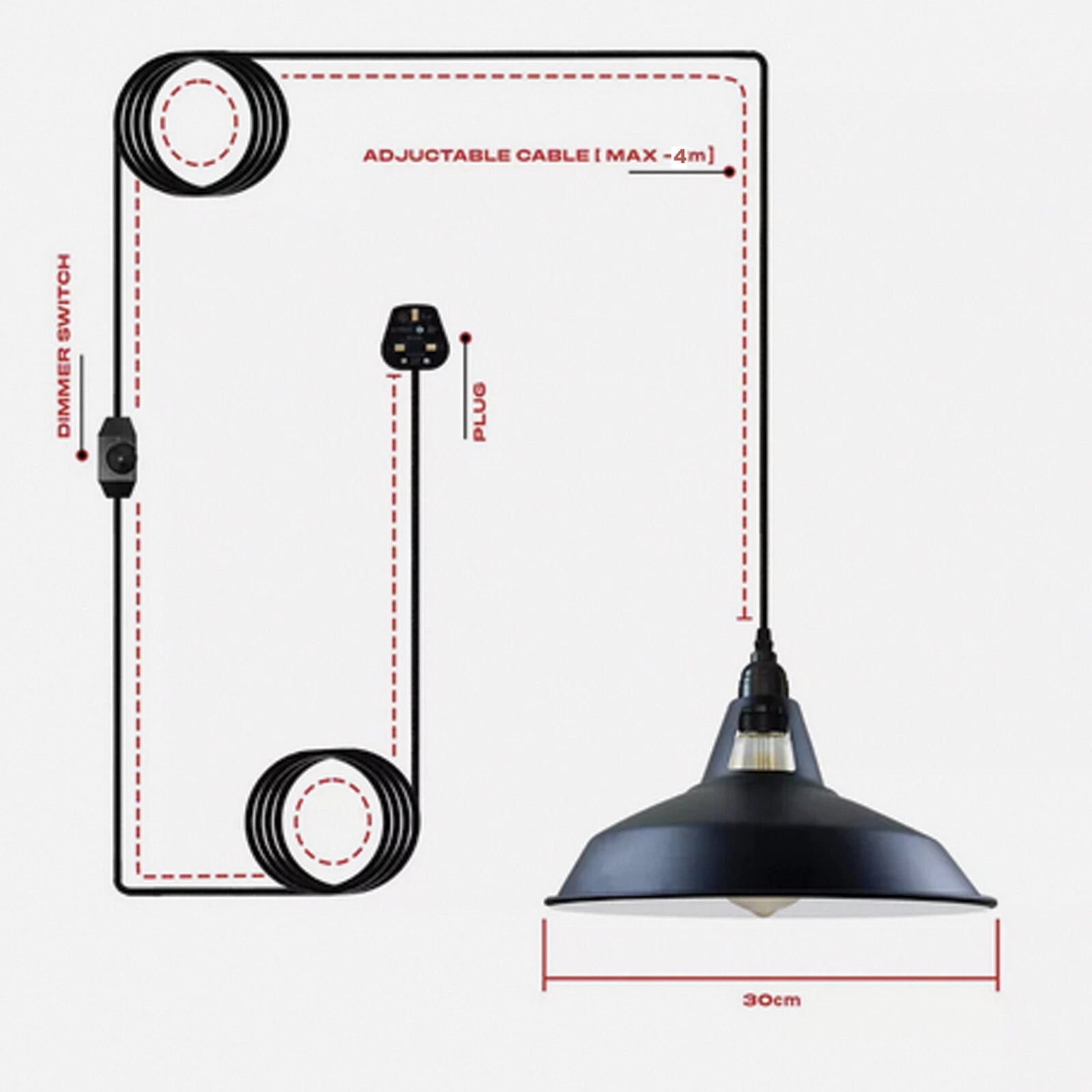 4m Plug in Hanging Pendant Light with 30cm Shade & Dimmer ~6498