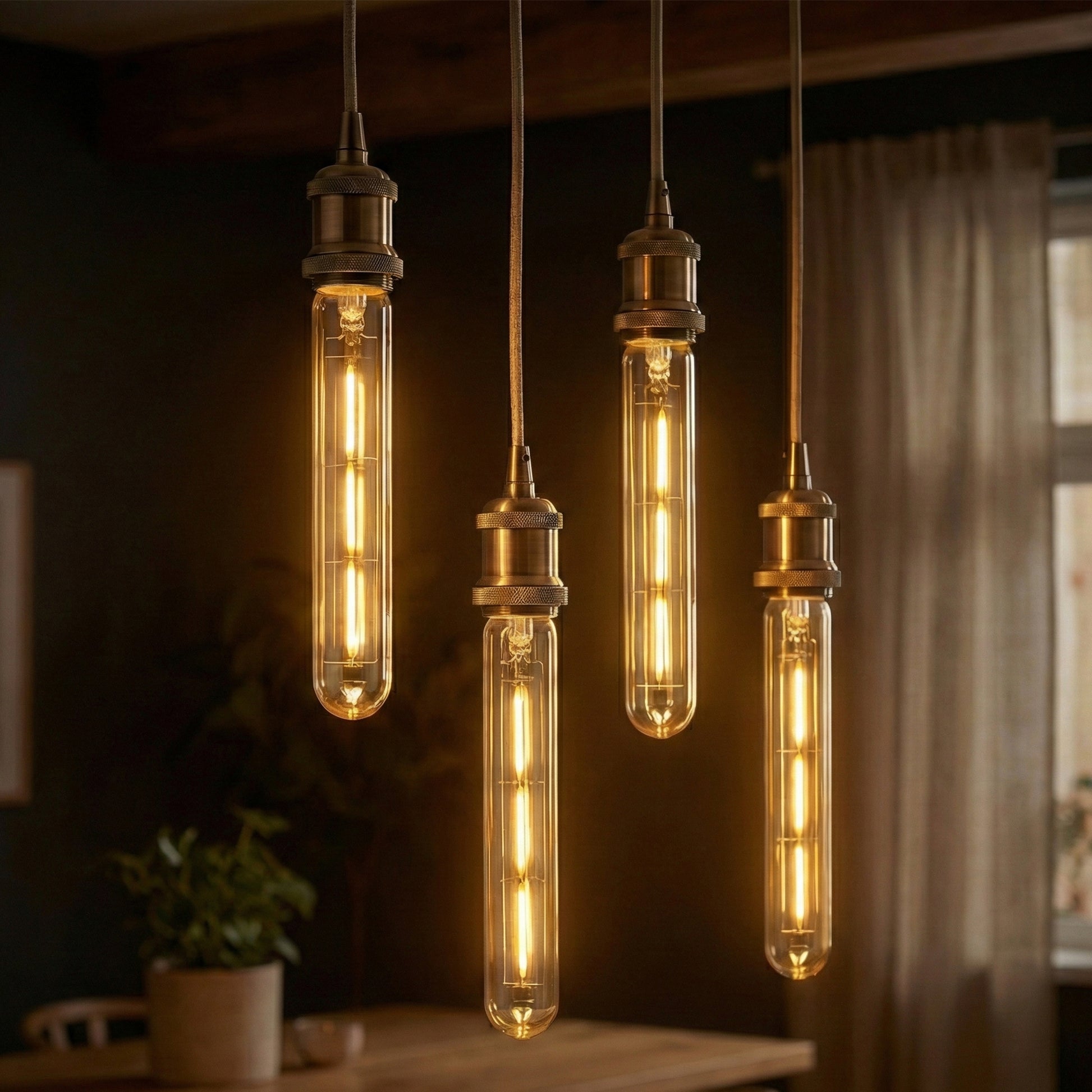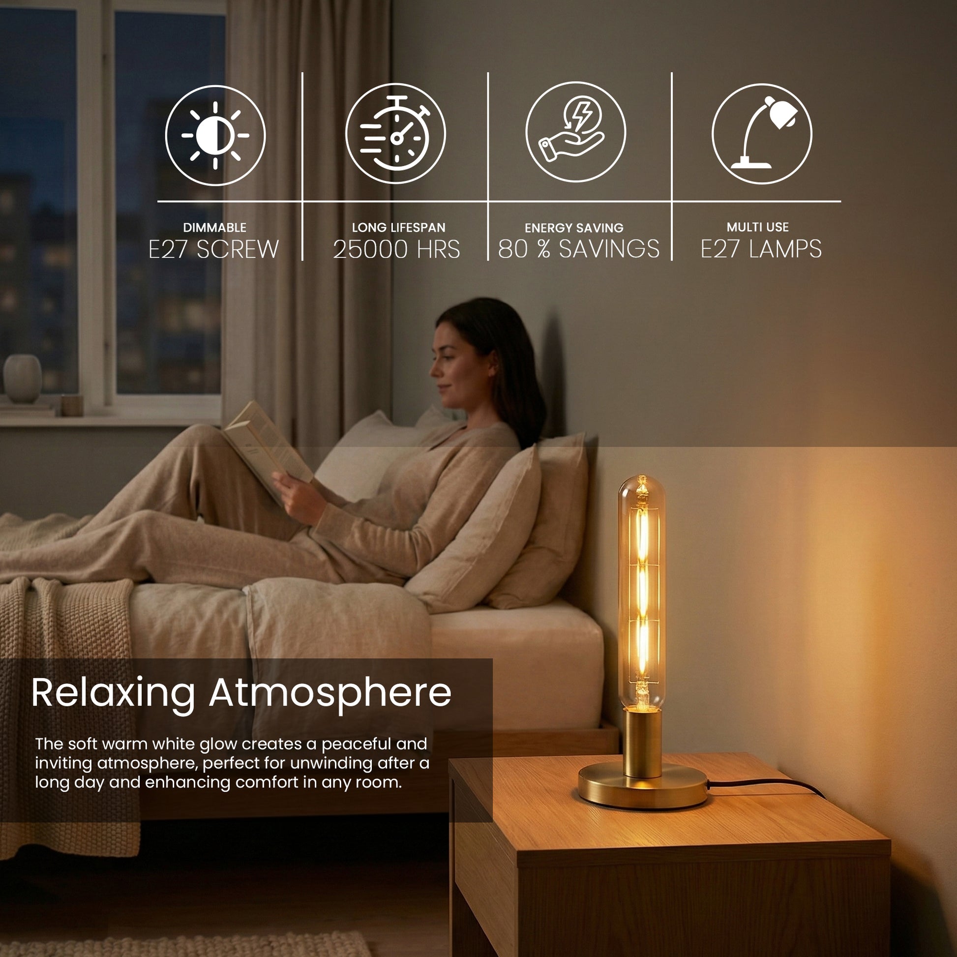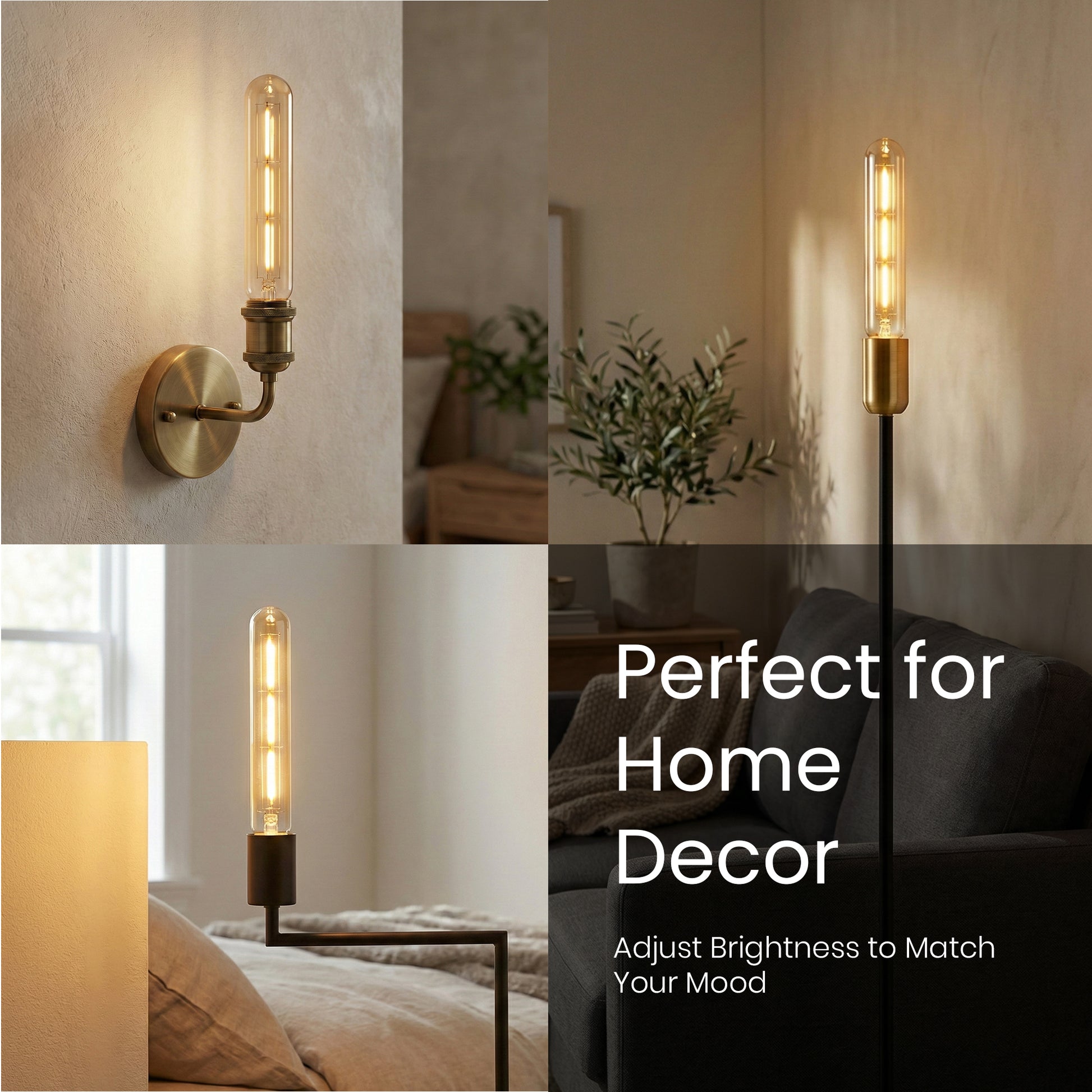 - Vintage Aesthetic: The long tubular shape (T185) and amber glass finish add an elegant, antique touch to any room.