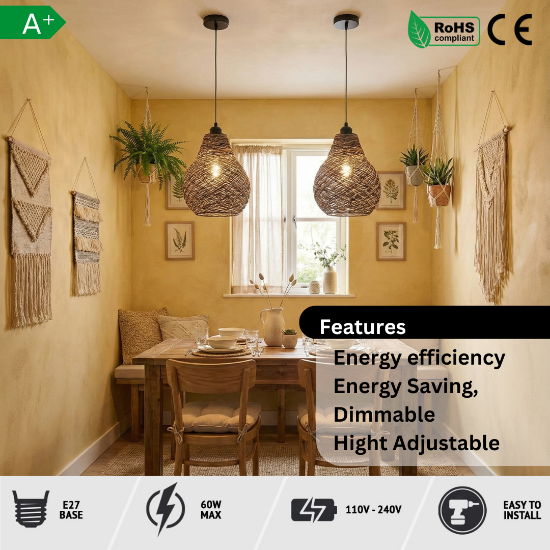 Elevate your interior design with our Rattan Pendant Light, a stunning fusion of natural craftsmanship and modern functionality. Whether you are looking to add a touch of rustic charm to your kitchen island or create a cozy, romantic atmosphere in your living room, this wicker ceiling light is the ultimate statement piece.