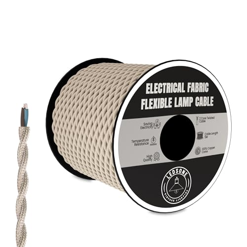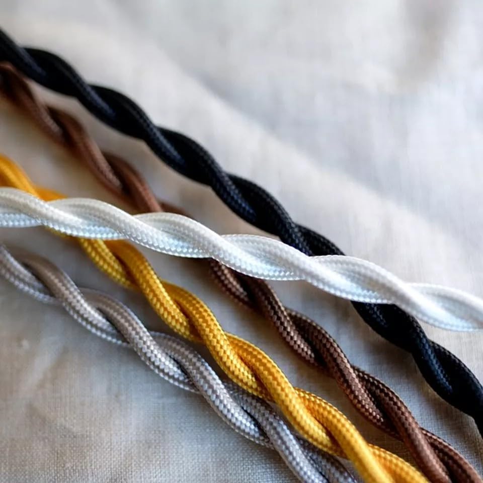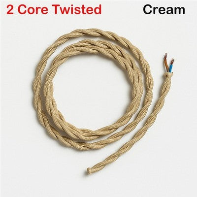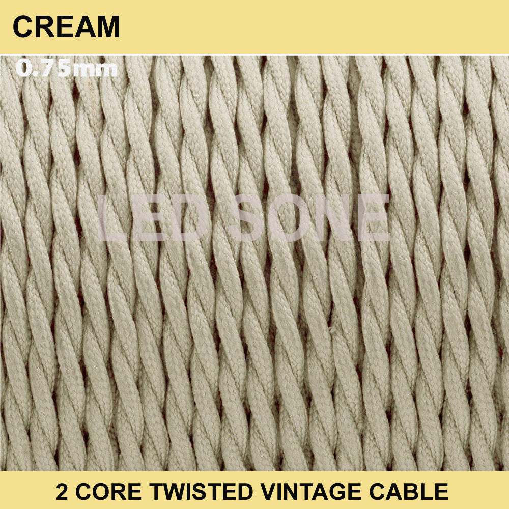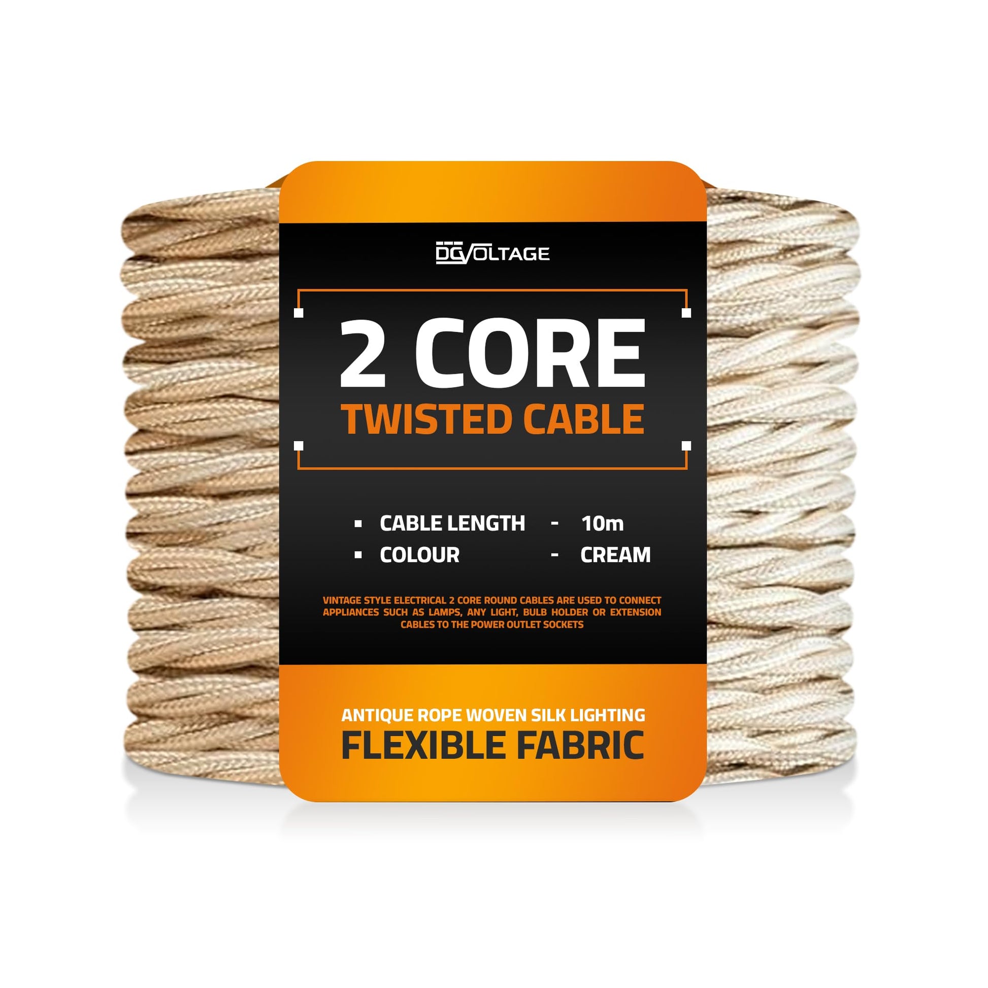 • This 2-core twisted fabric cable in cream adds a vintage charm to your lighting projects, perfect for pendant lights, chandeliers, and DIY projects.