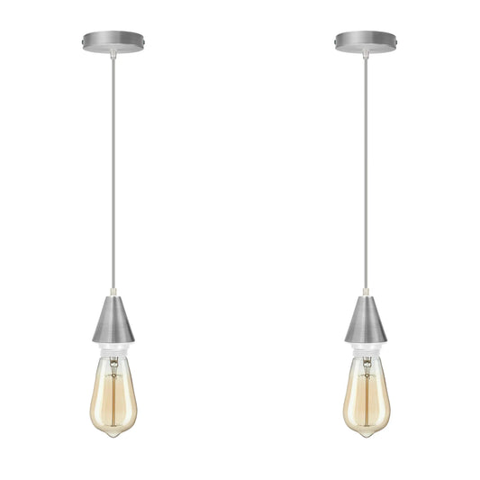 2Pack Satin Nickel E27 Cone Holder,1m PVC Cable,Ceiling Rose Plate ,Accessories~4288