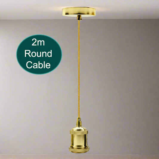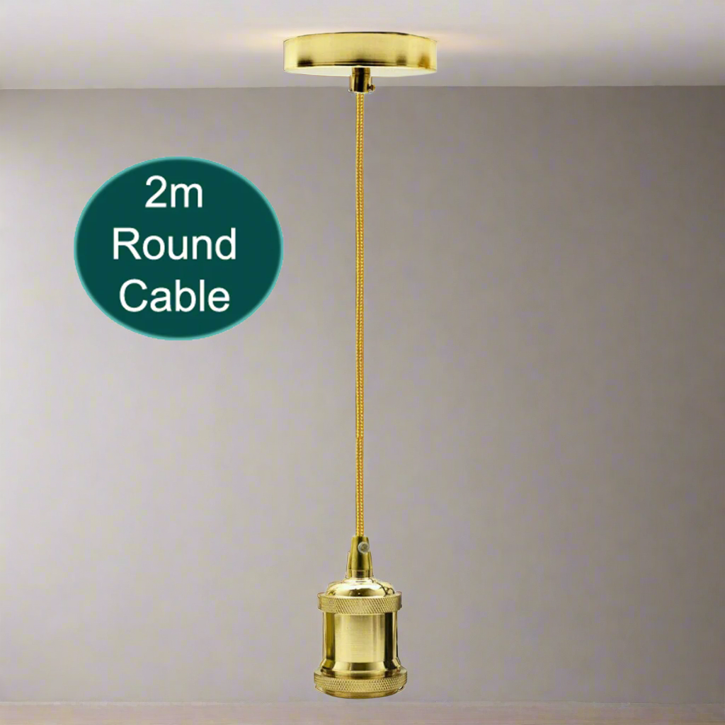 - 2 Meter 3 Core Round Cable Vintage E27 Bulb Holder Pendant Kit