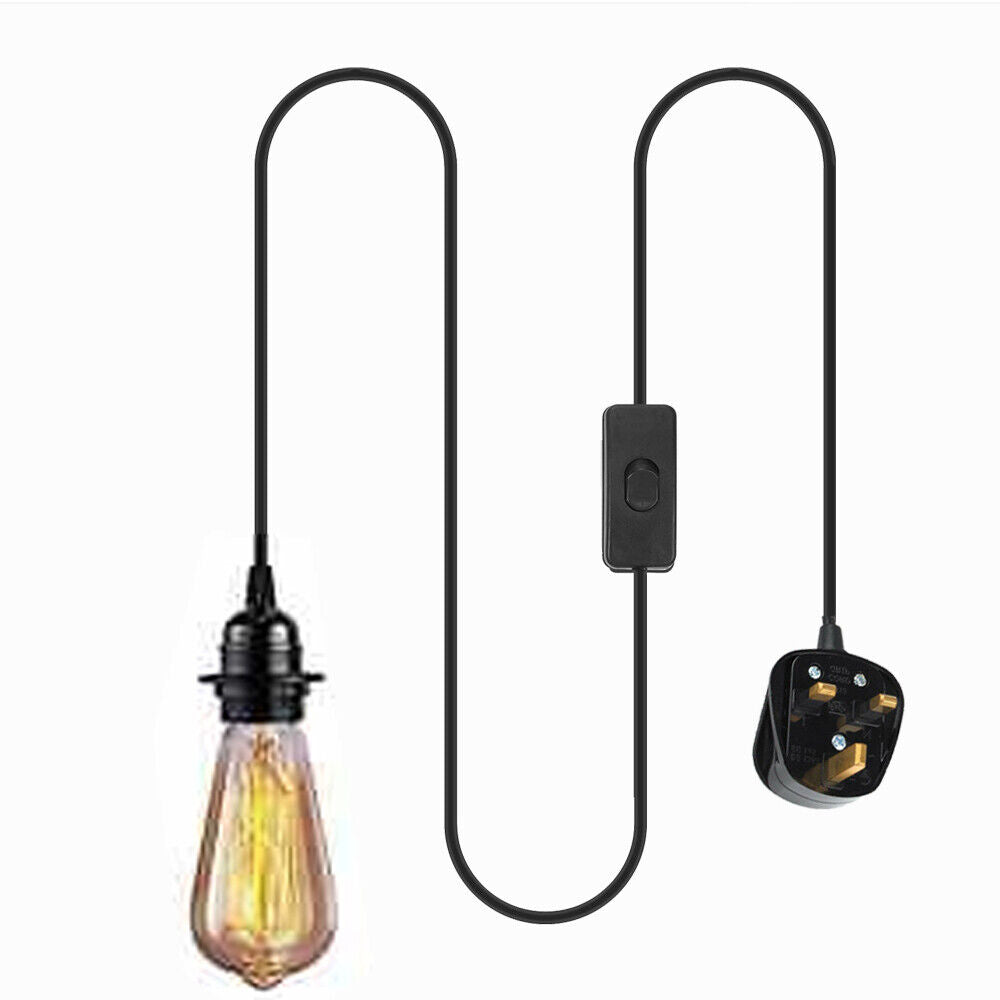 2m Plug In Light Bulb Kit E27 Lamp ES With Switch ~5946