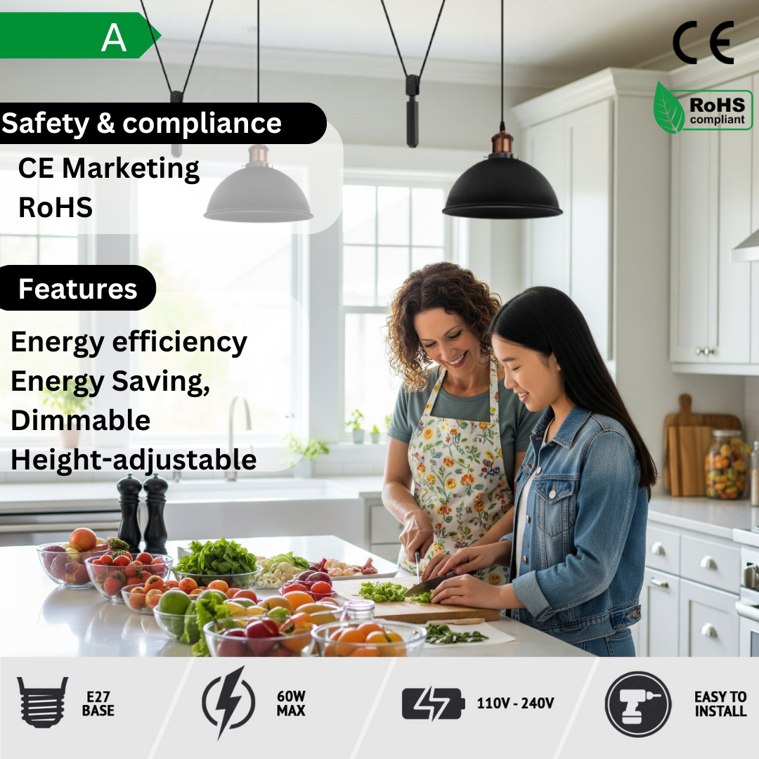 - Bring the best of vintage-industrial lighting to your home with the 2M Adjustable Pendant Light with Pulley System. Its sleek design, adjustable height, and durable materials make it the perfect choice for modern interiors.