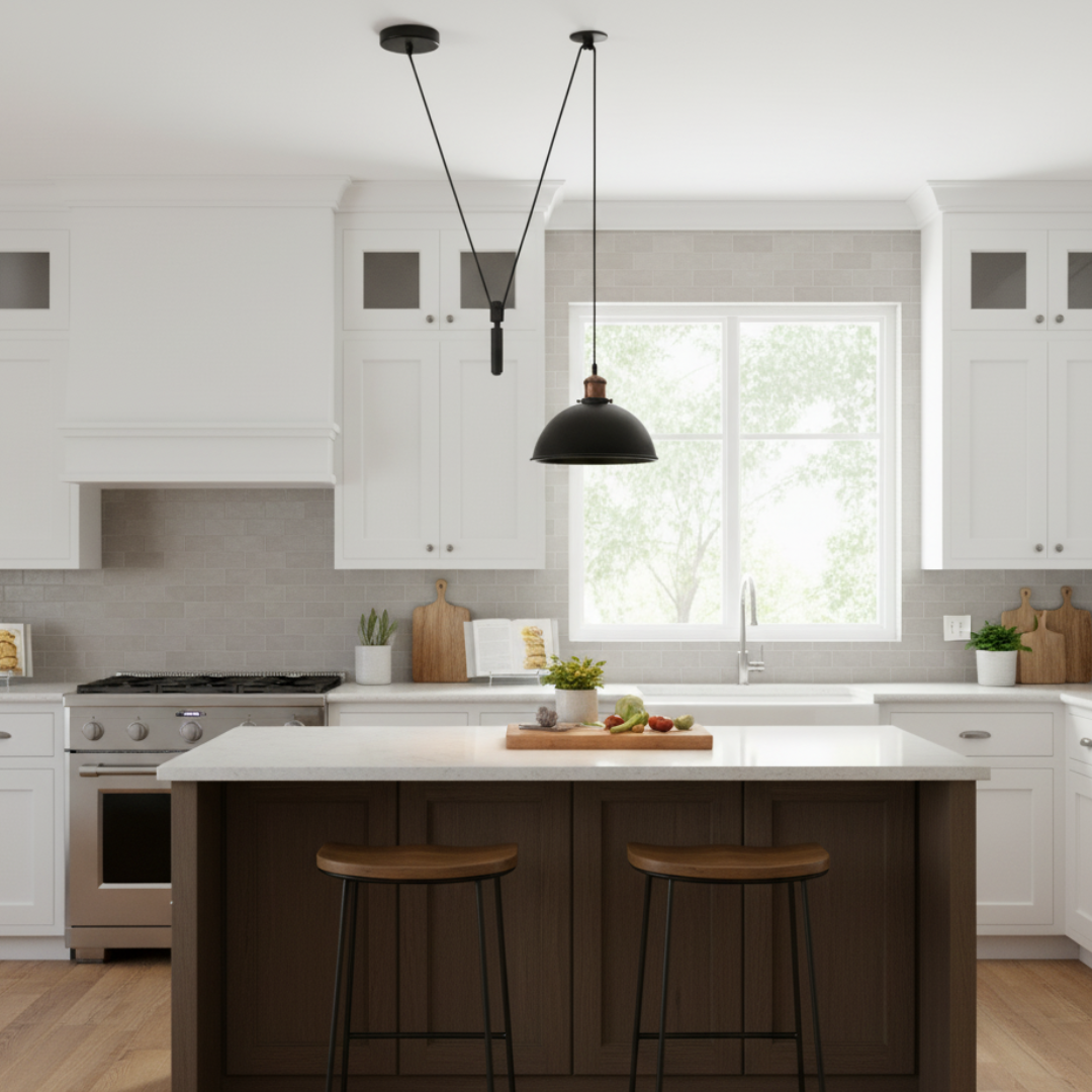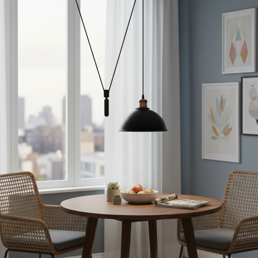 Metal Shaded 2M Adjustable Pendant Light with Pulley System – Vintage-Modern Industrial Design for Every Room