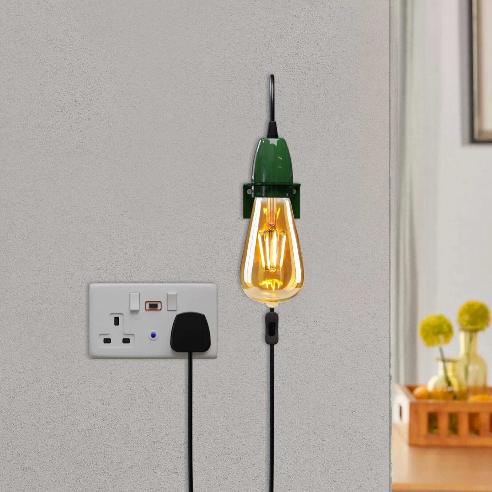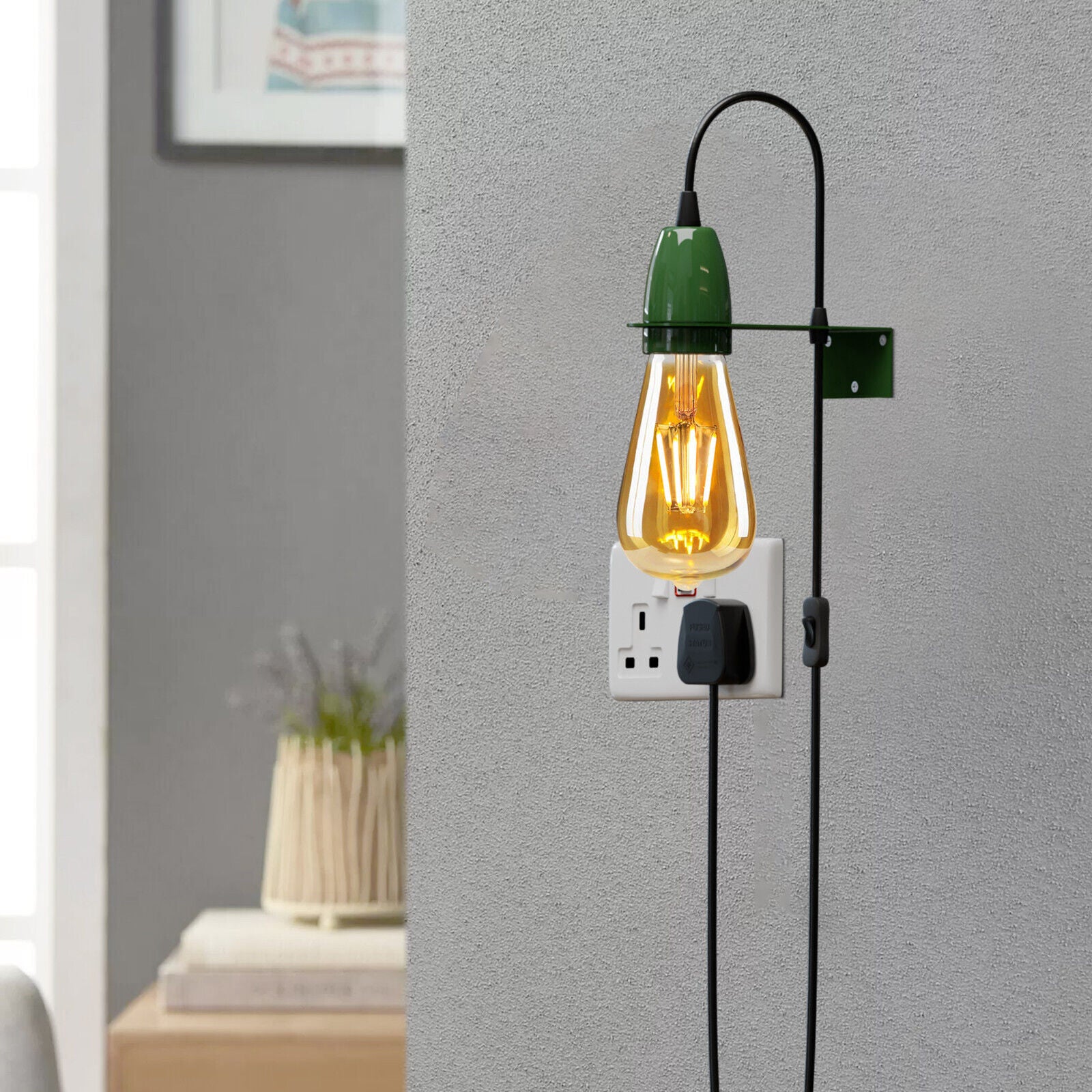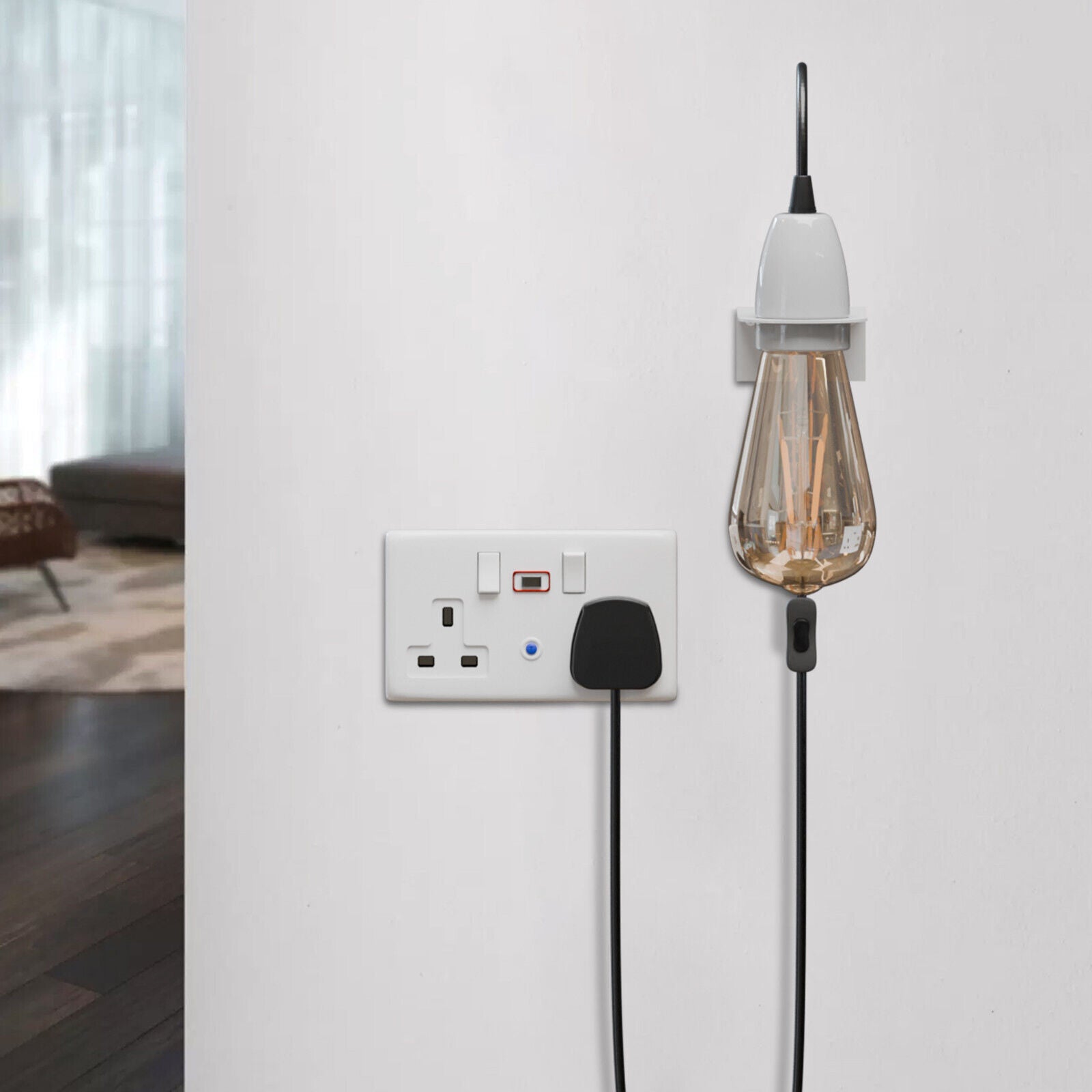 Plug-In Wall Light E27 Socket Adjustable Hanging Cord ~ 5696