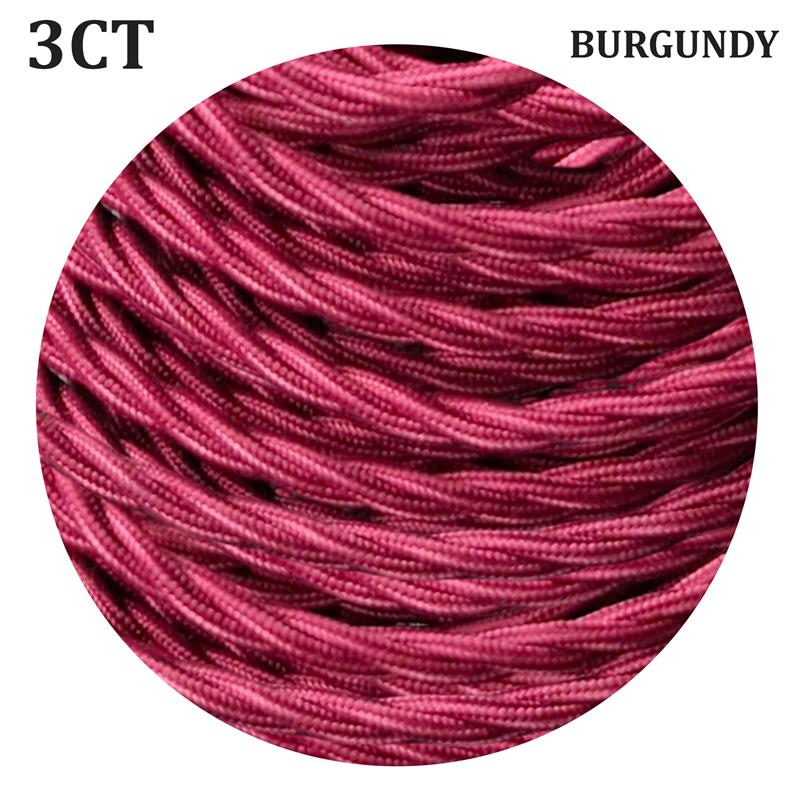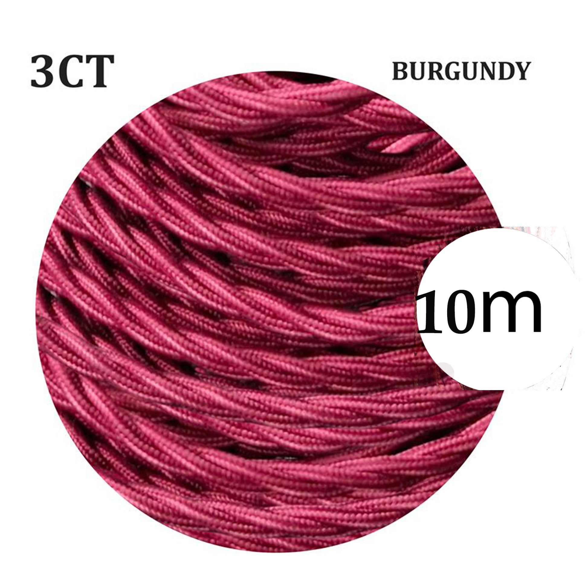 Burgundy 3 Core Twisted Vintage Fabric Cable–0.75mm Flex~3055