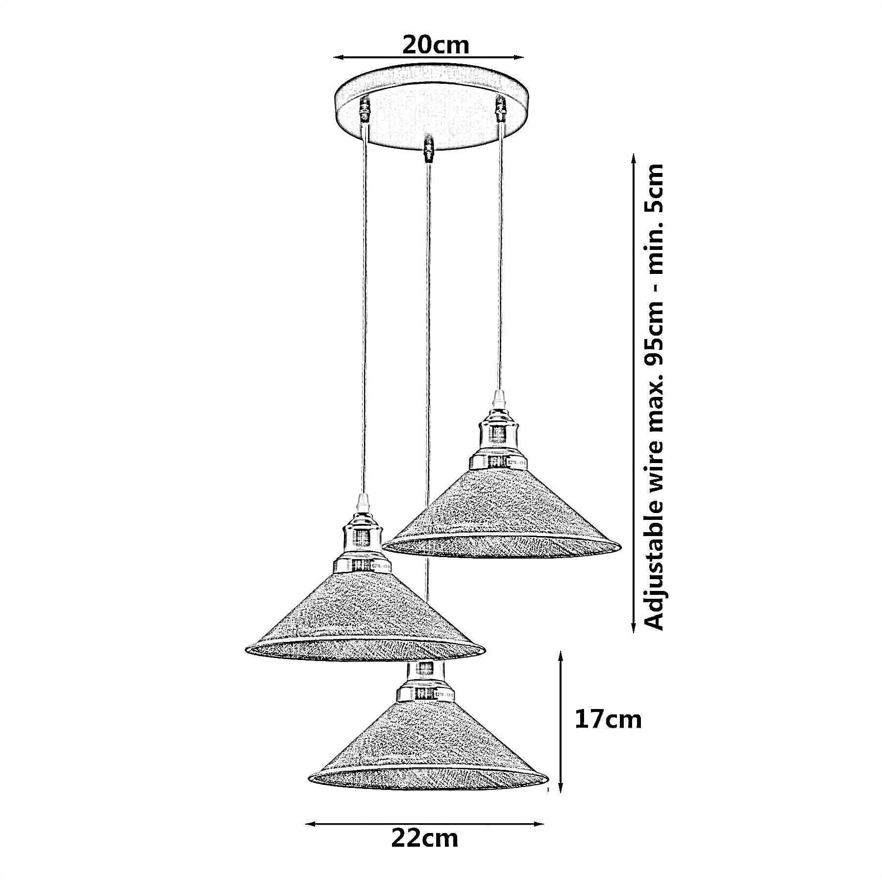 3 Head Pendant Light Metal Cone Shade Hanging Light Fitting ~1302