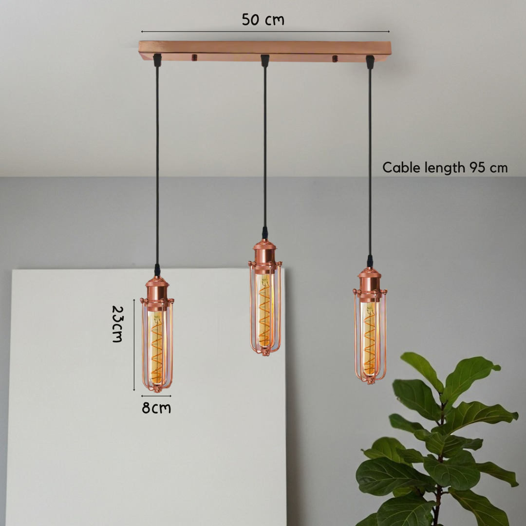 Rose Gold 3-Head Pendant Light | Rectangle Wire Cage E27~4208