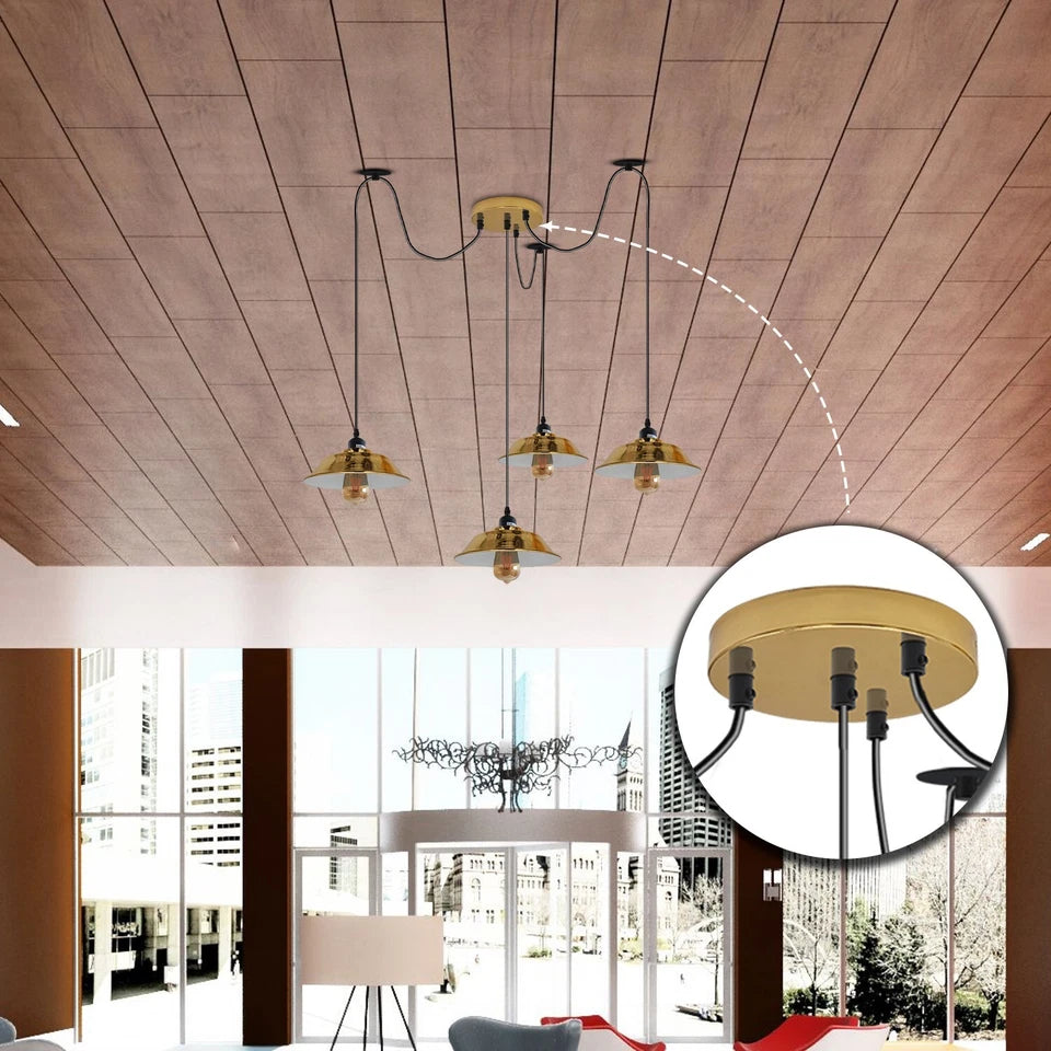 Multi Outlet Drop Pendant Yellow Brass Ceiling Rose