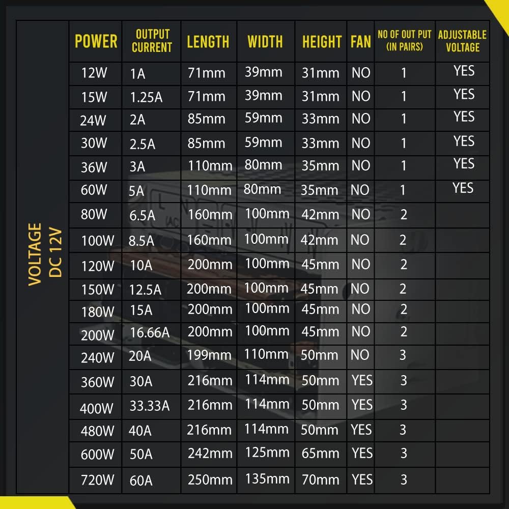This unit is specifically designed for 12V LED Strip Lighting, CCTV Camera Systems, and 3D Printing.