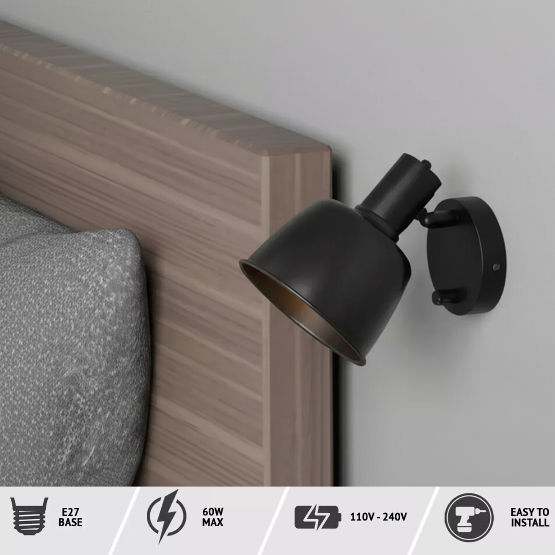 - The wall fixture includes an adjustable arm, offering a rotation range of over 90° (up to less than 180°), allowing for precise lighting direction and versatility in placement.