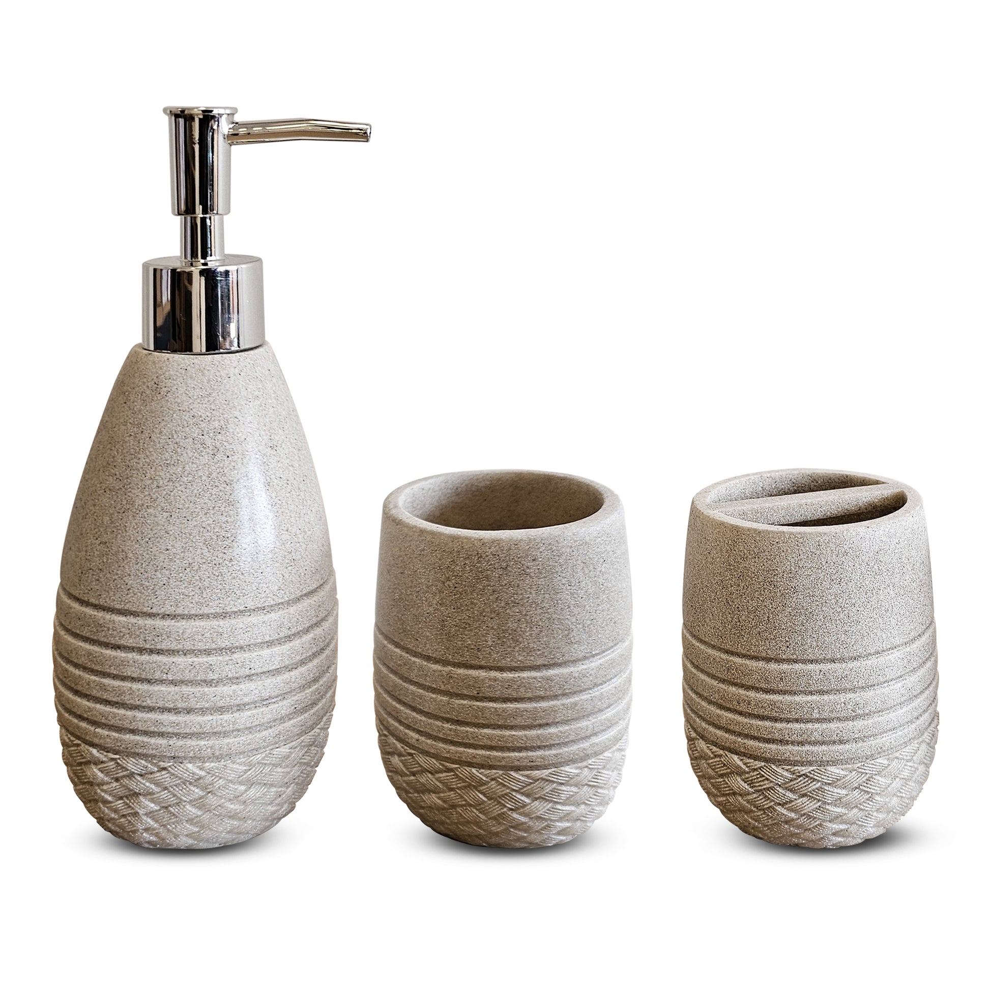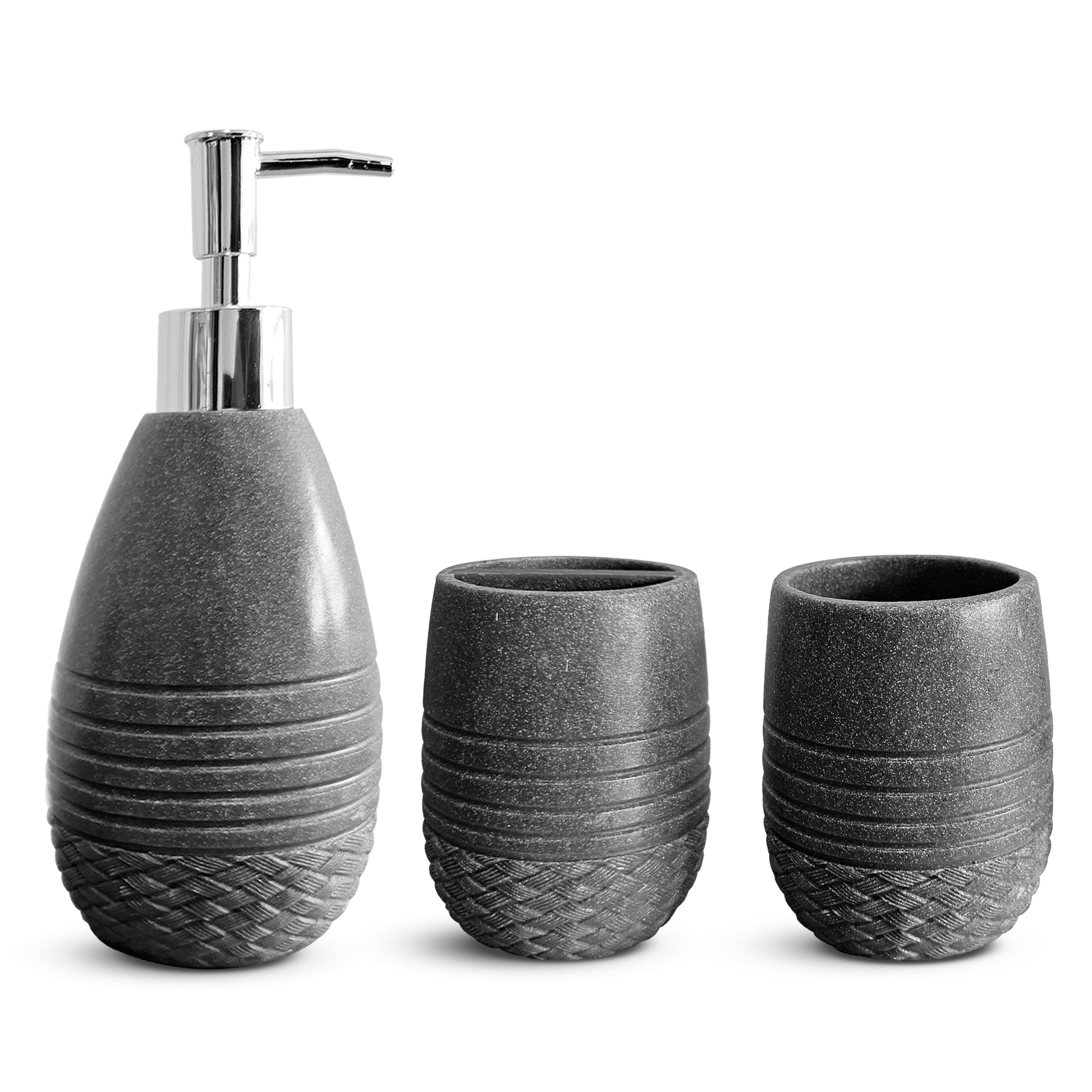 - The bathroom accessory set includes a lotion dispenser toothbrush holder, and tumbler, which allows you to store your bathroom stuff easily.