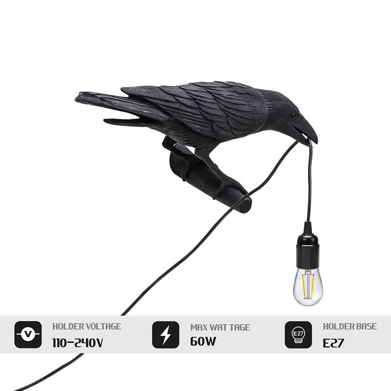 - DESIGN: Artistic resin crow wall light with a unique, striking design that adds a charming twist to any lighting collection.