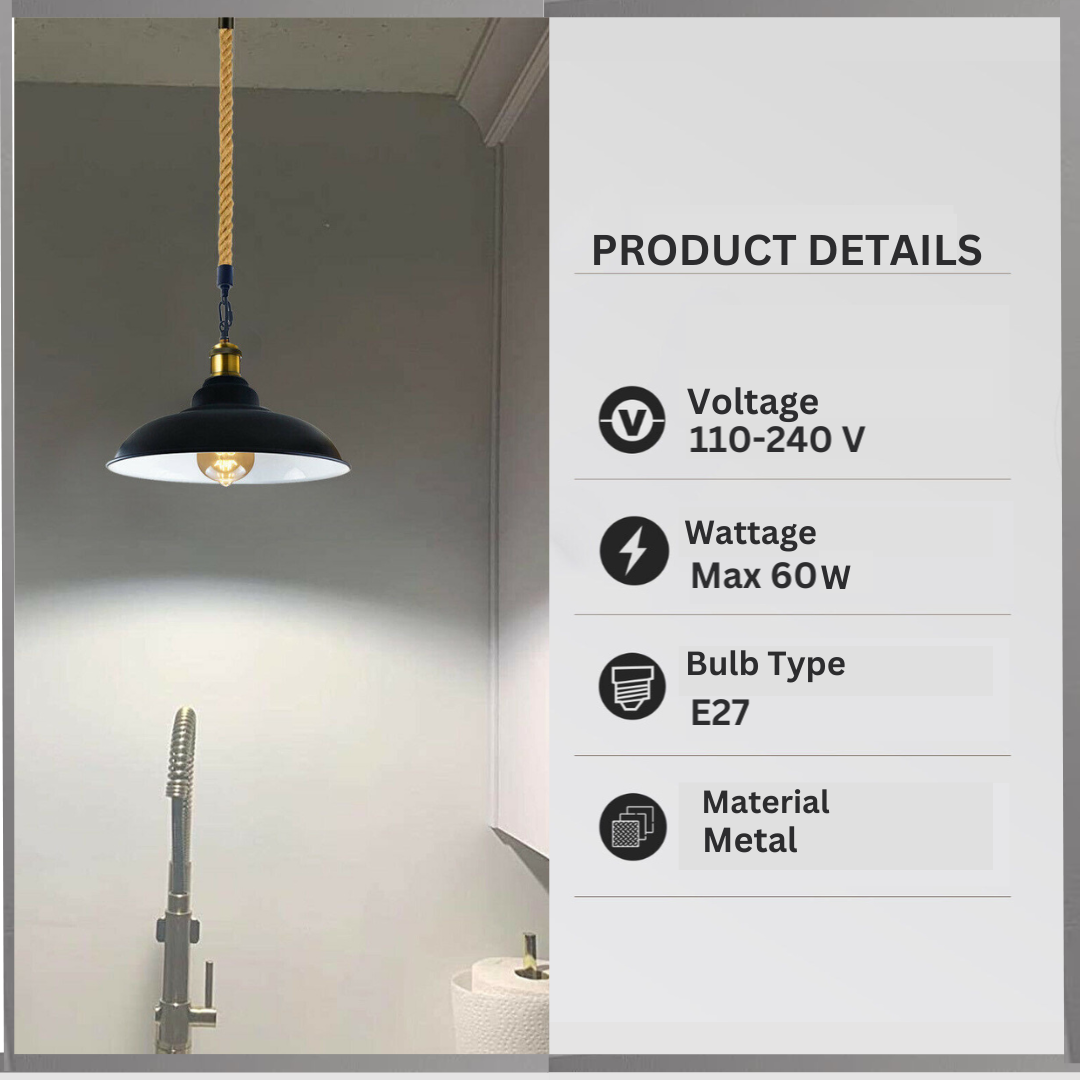 • A complete including pendant, metal shade, ceiling canopy,installation hardware.