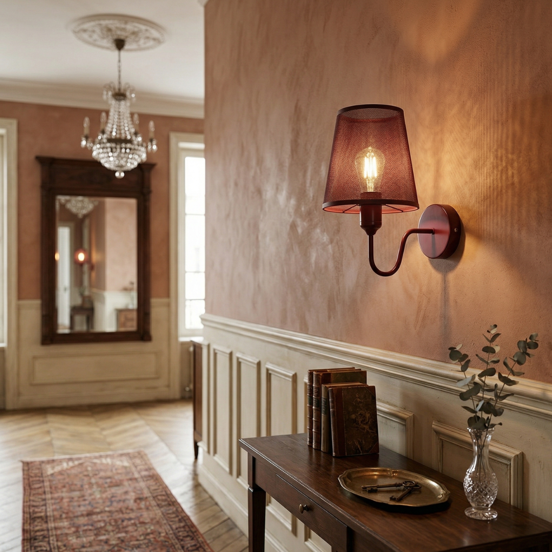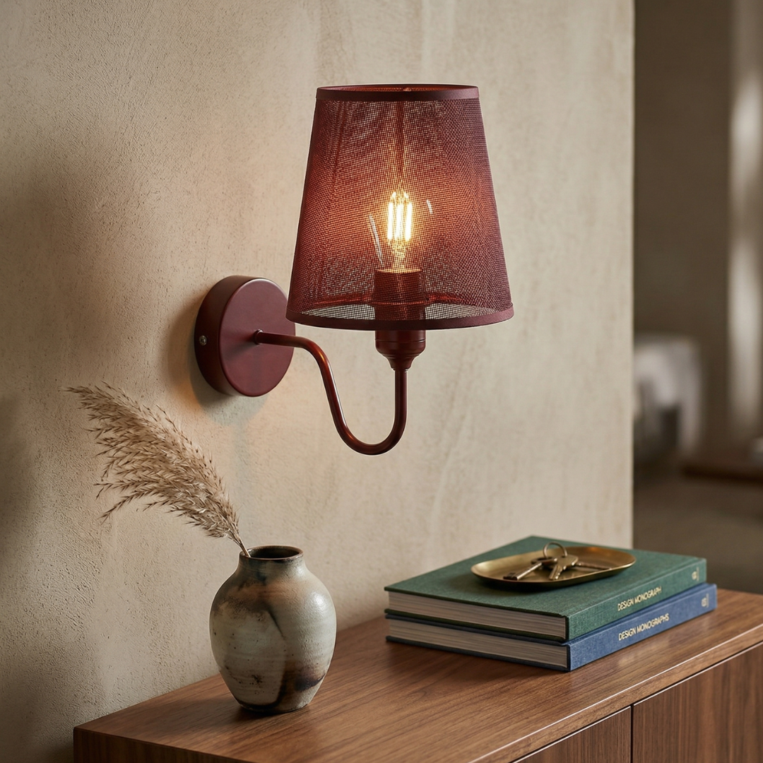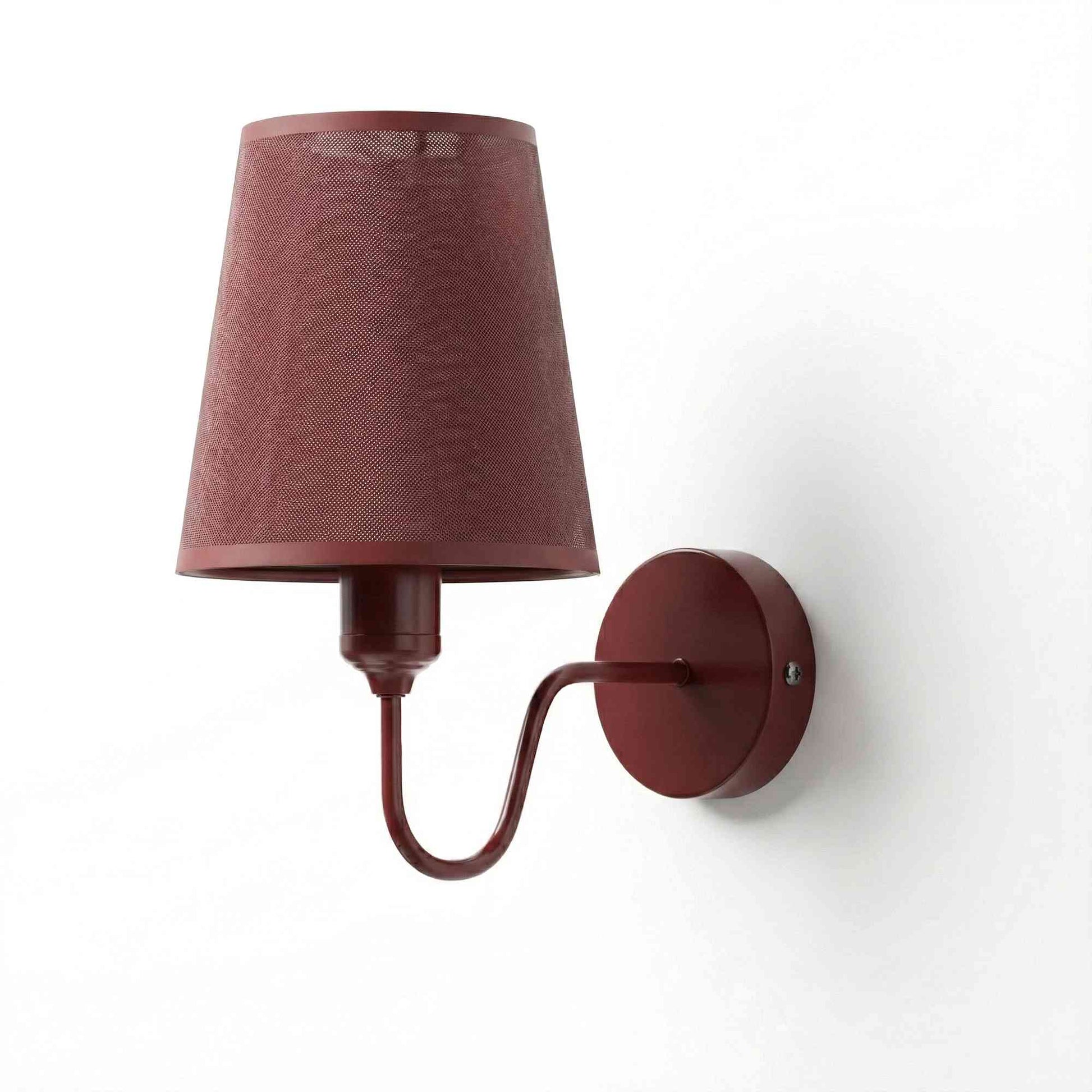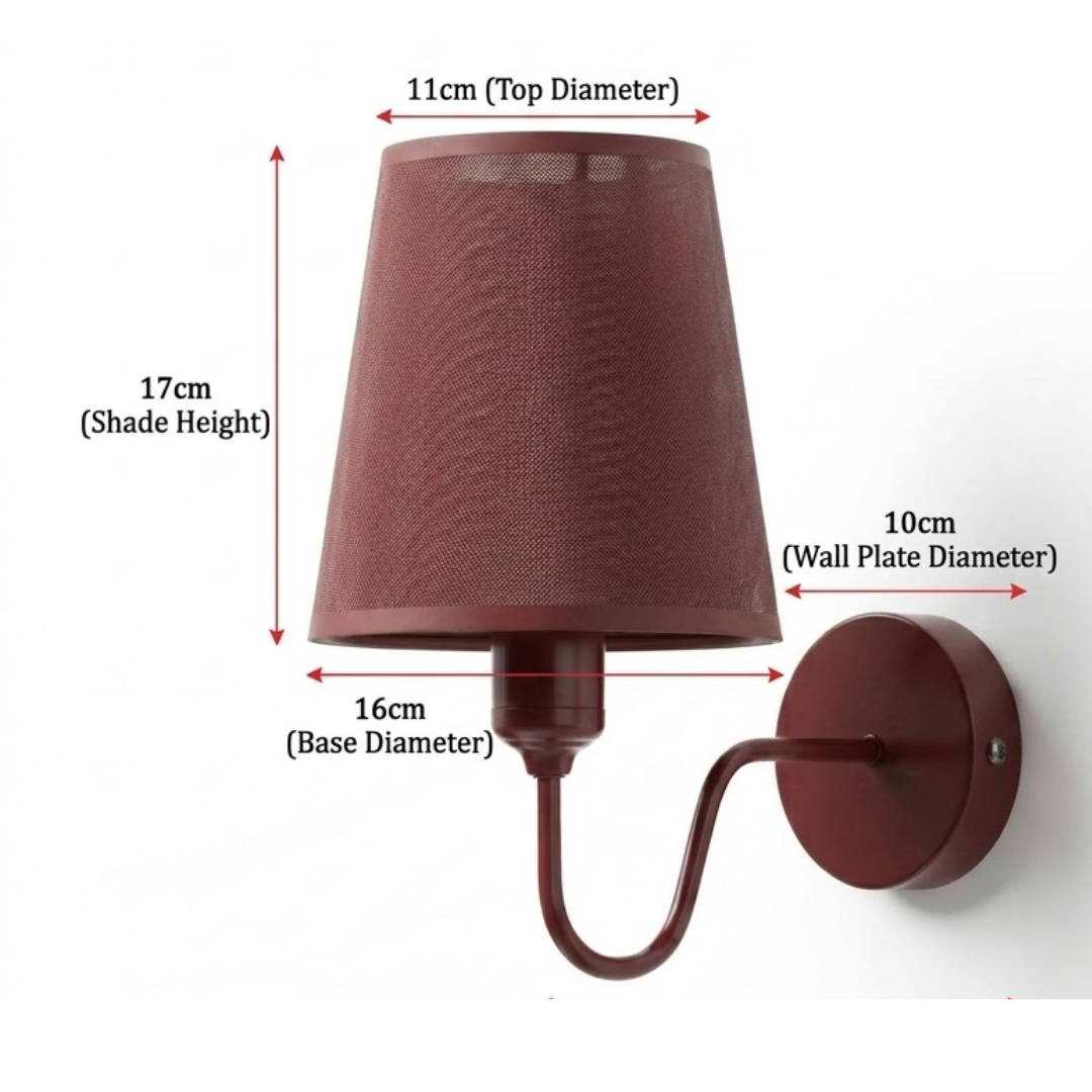 Built to last, this hardwired wall sconce features a durable metal ceiling rose and bulb holder finished in a striking maroon that perfectly matches the high-quality fabric shade. As a premium fabric wall sconce, the shade is expertly crafted to diffuse light evenly, preventing harsh glares while highlighting the rich texture of the material.