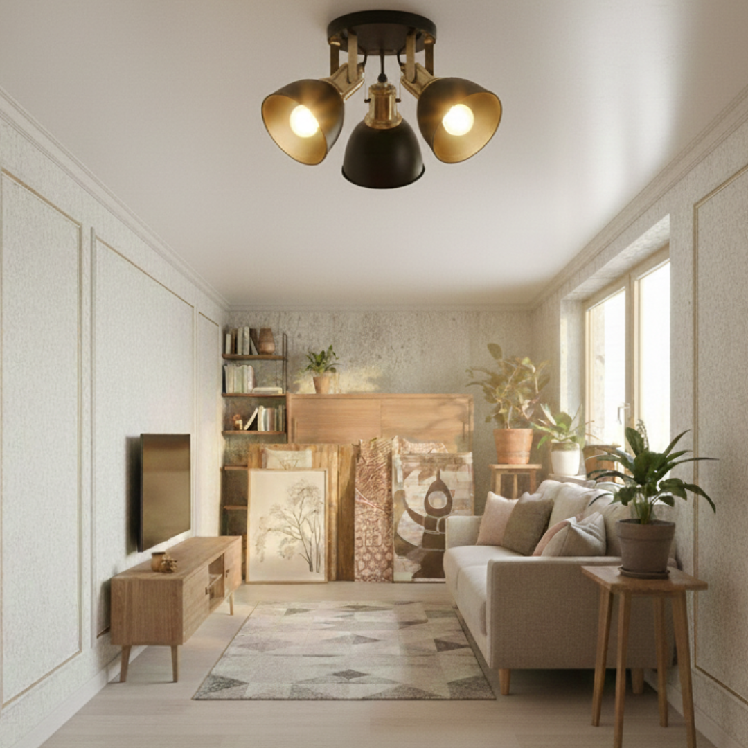 Say goodbye to dark corners. The standout feature of this semi flush mount light is its fully adjustable design. Each of the three heads features a 180° vertical tilt and rotatable flexibility, allowing you to direct the adjustable ceiling spotlights exactly where you need them. It is perfect for highlighting artwork, illuminating kitchen islands, or providing focused task lighting in a home office.