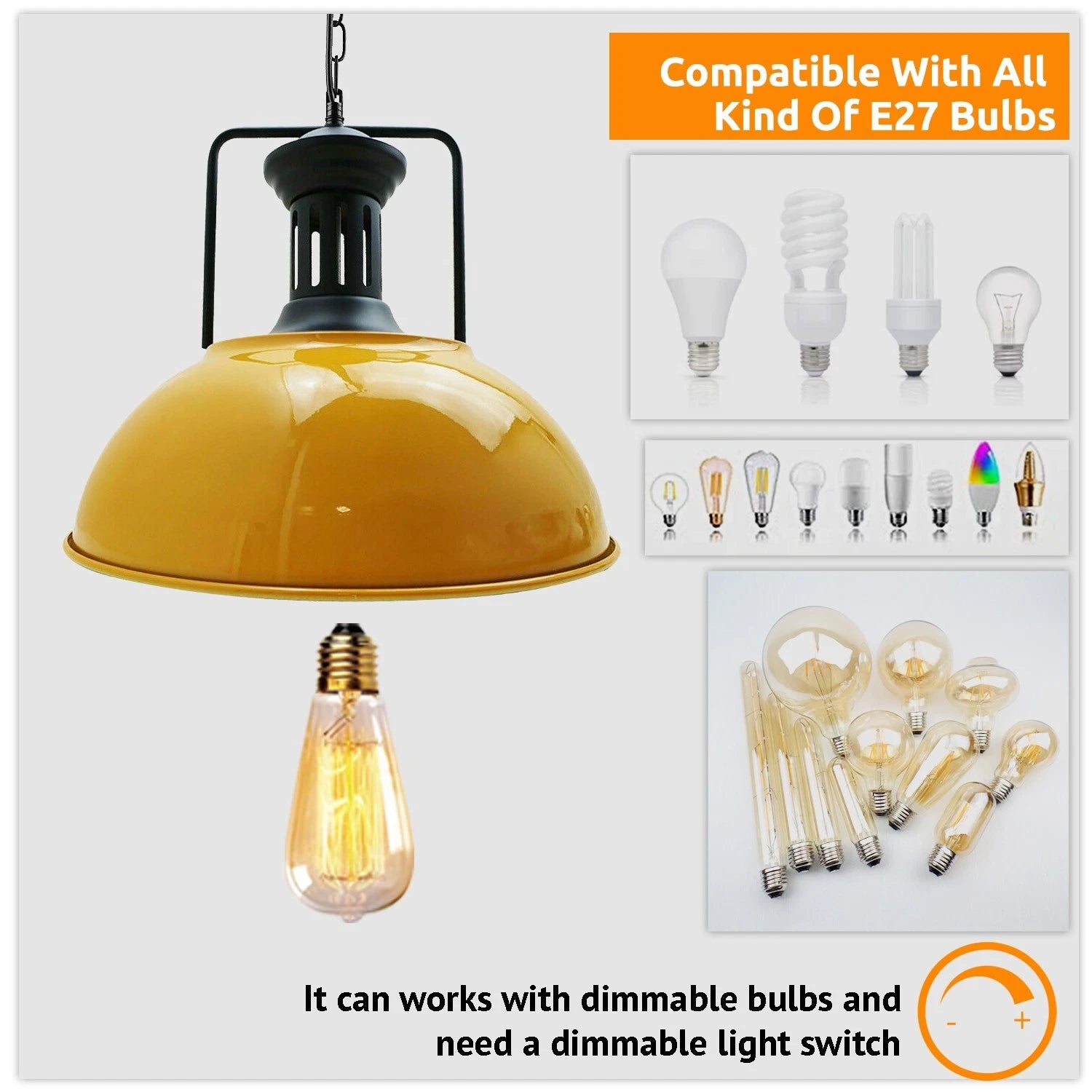 - Bulb Type: Compatible with all kinds of E27 Bulbs