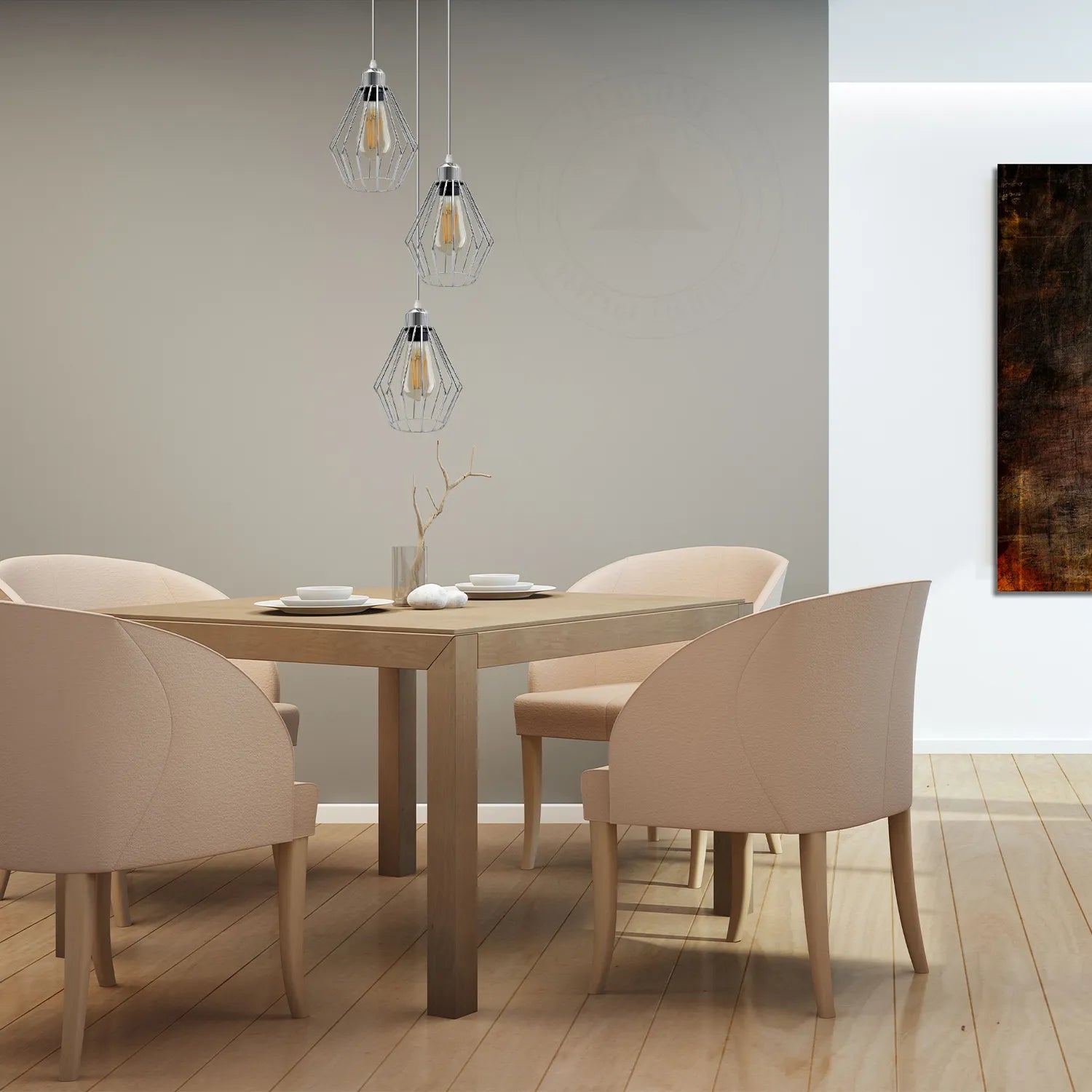 - This Pendant Ceiling Lamp chrome diamond open cage design gives an industrial feel to the lamp, making it a good fit for rustic decor styles.