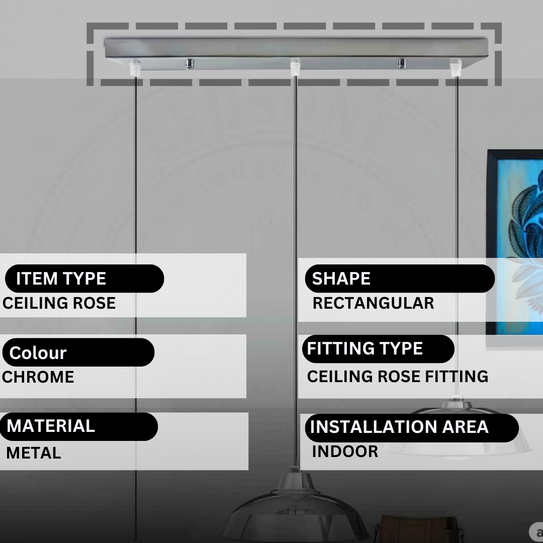 - Rectangular shaped plated metal ceiling rose with accessories for Light Fittings and light chandeliers.