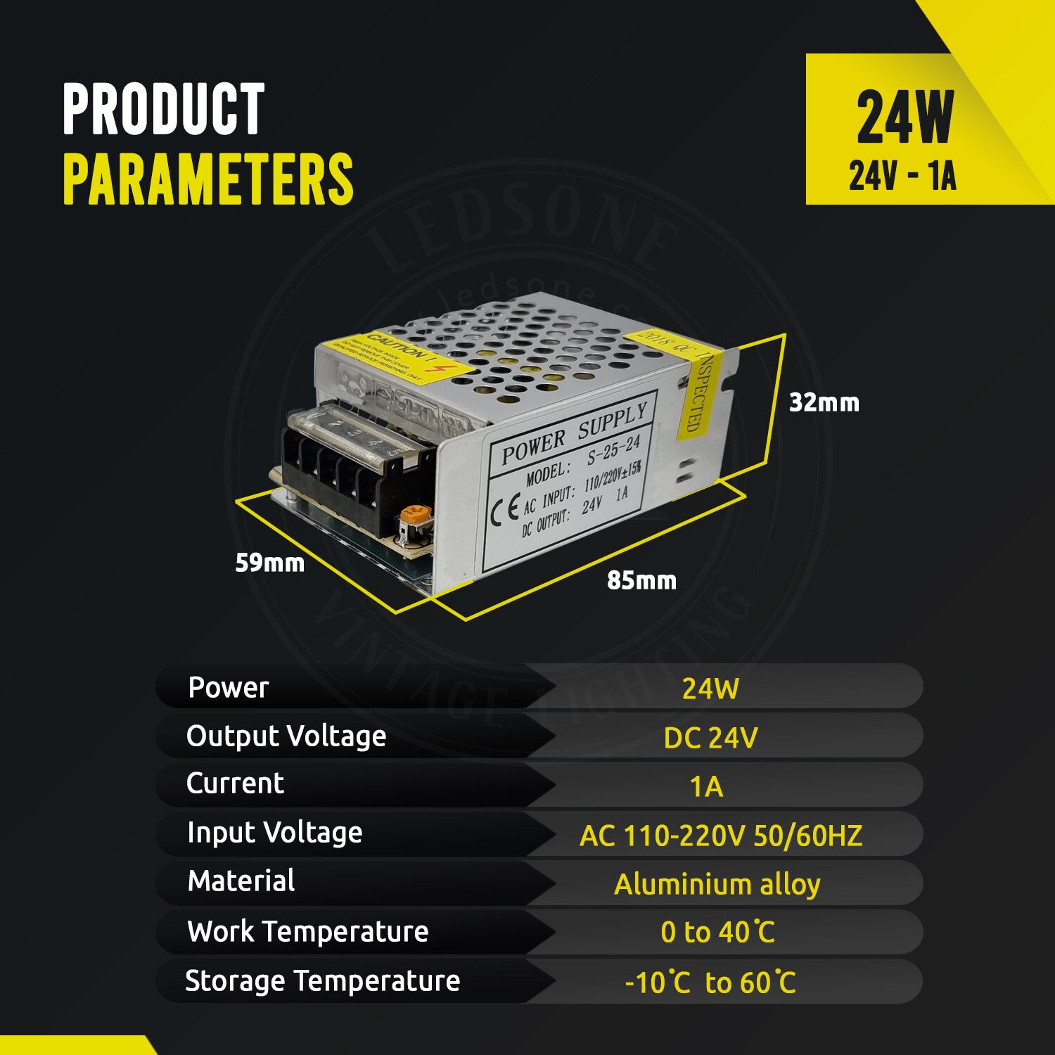 - Reliable Power Supply: Converts AC 110-220V to a stable 24V DC output, making it ideal for powering LED strips, 3D printers, CCTV cameras, and low-voltage electronics.