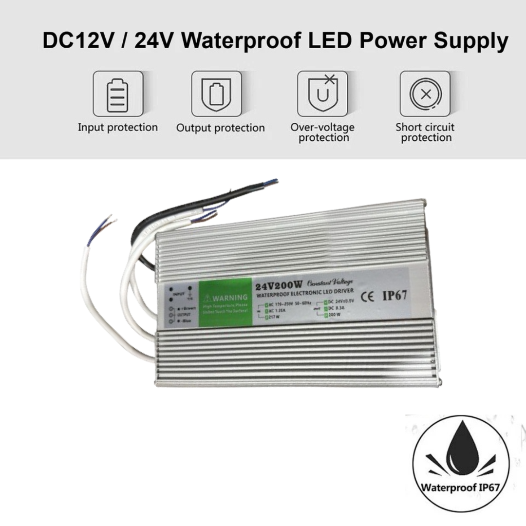 - 1 x 24V 200W IP67 LED Power Supply Transformer
