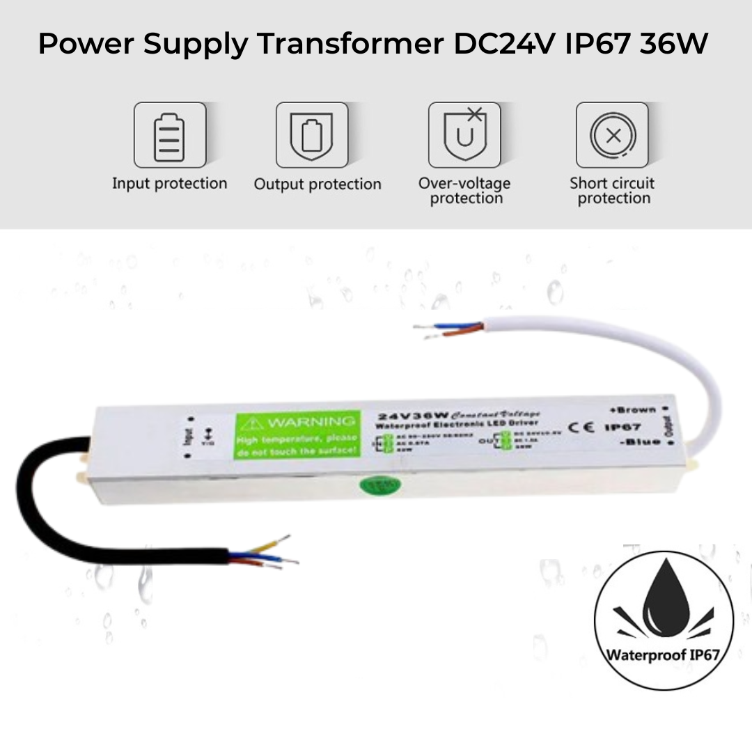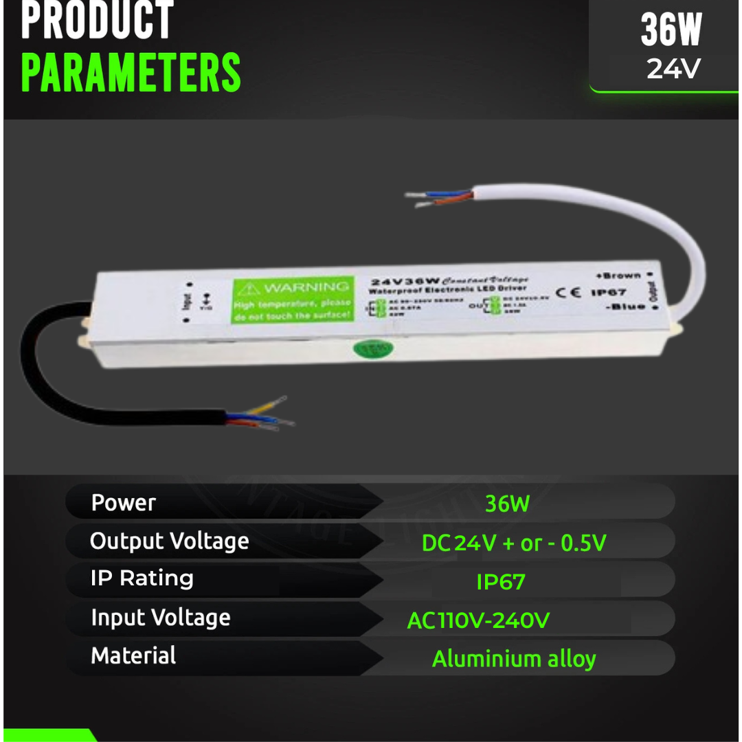 - This DC24V IP67 LED Transformer / Driver is used to power low voltage (24V) LED bulbs, strip lighting, CCTV camera, 3D printers and many other devices that require a DC24V constant voltage power supply.
