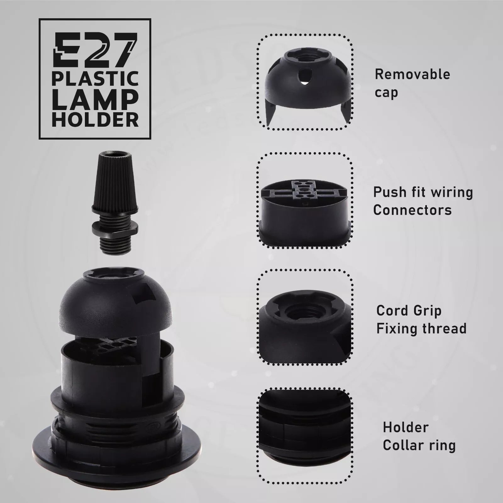 Black E27 Pendant Lamp Holder with Shade Ring & Cord Grip~2967