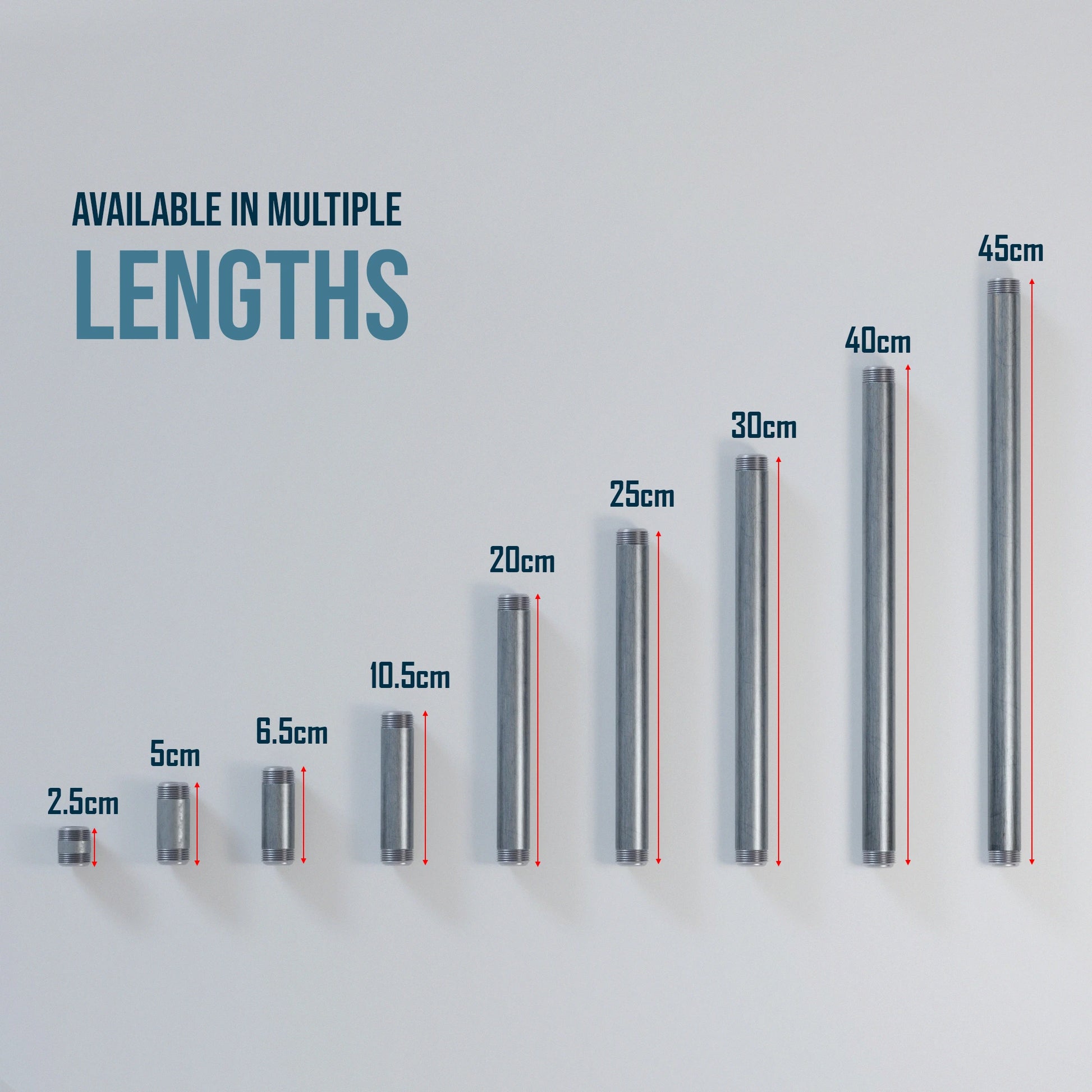 - 1 x 300mm double-threaded pipe only.