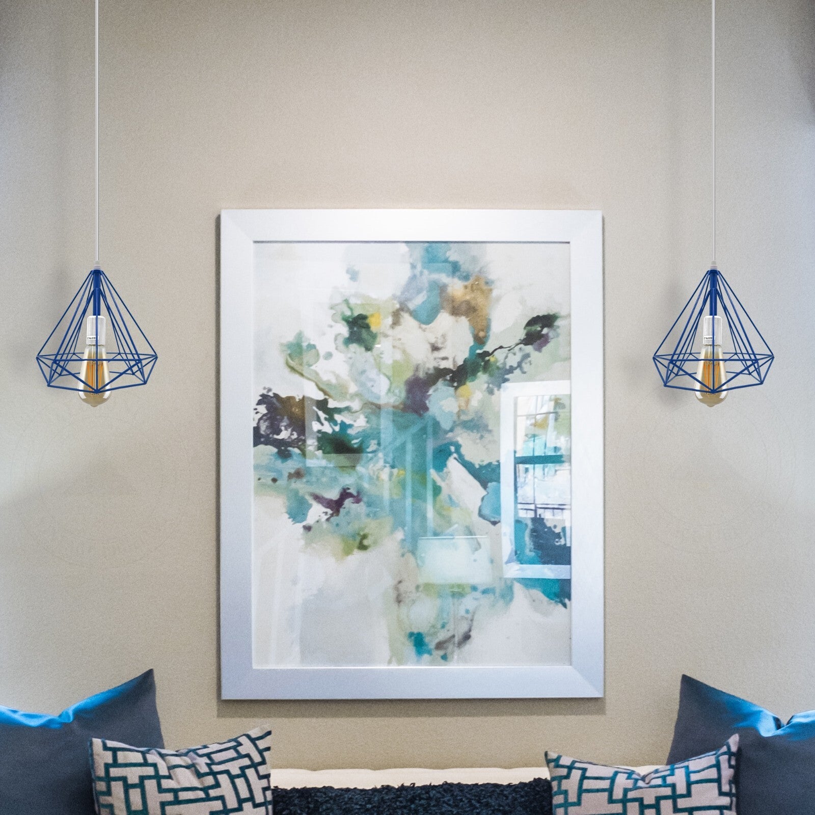 Geometric Blue Wire Cage Pendant~1991 - LEDSone UK Ltd