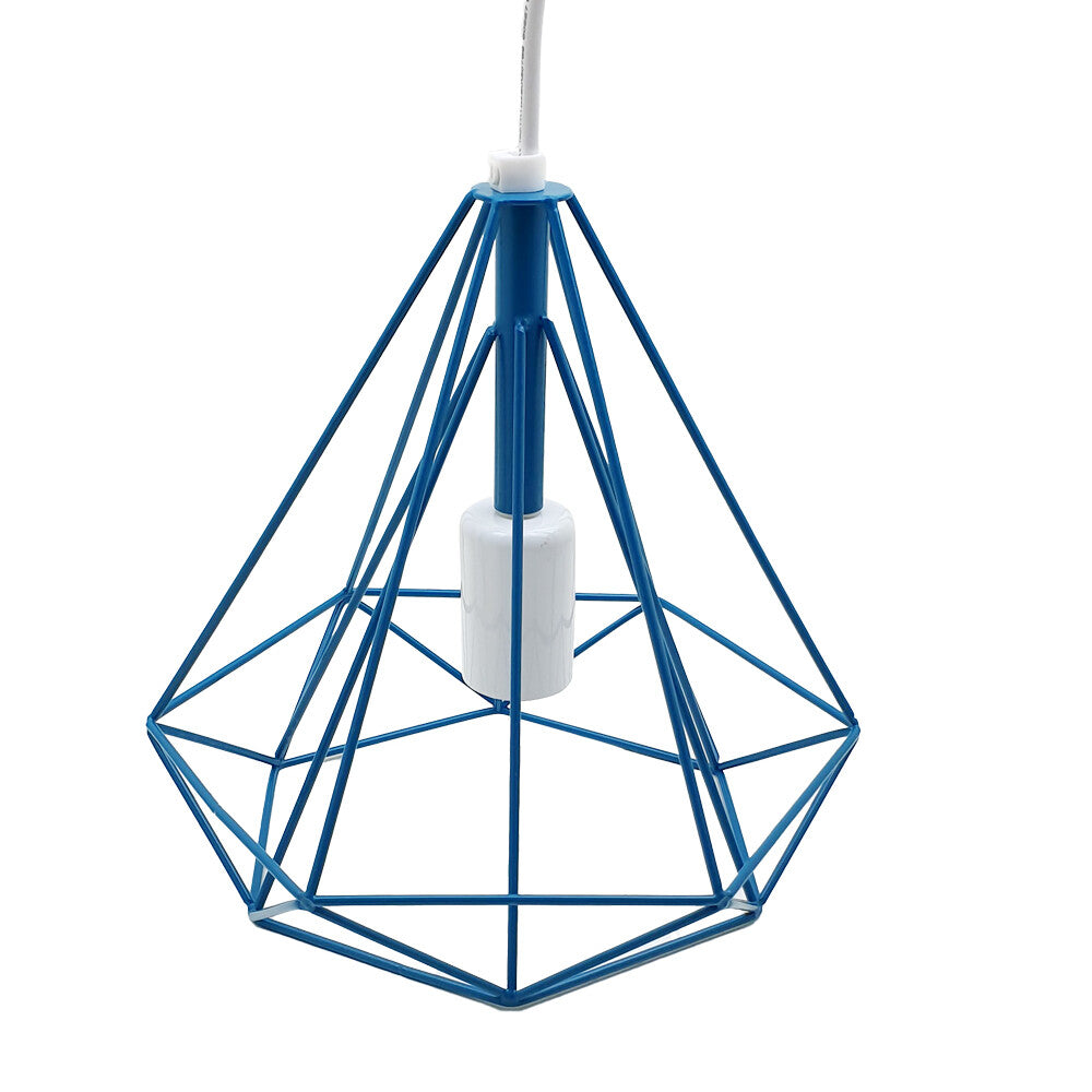 Blue Diamond Wire Cage Pendant Light Fixture E27 Ceiling Lamp Shade~1991