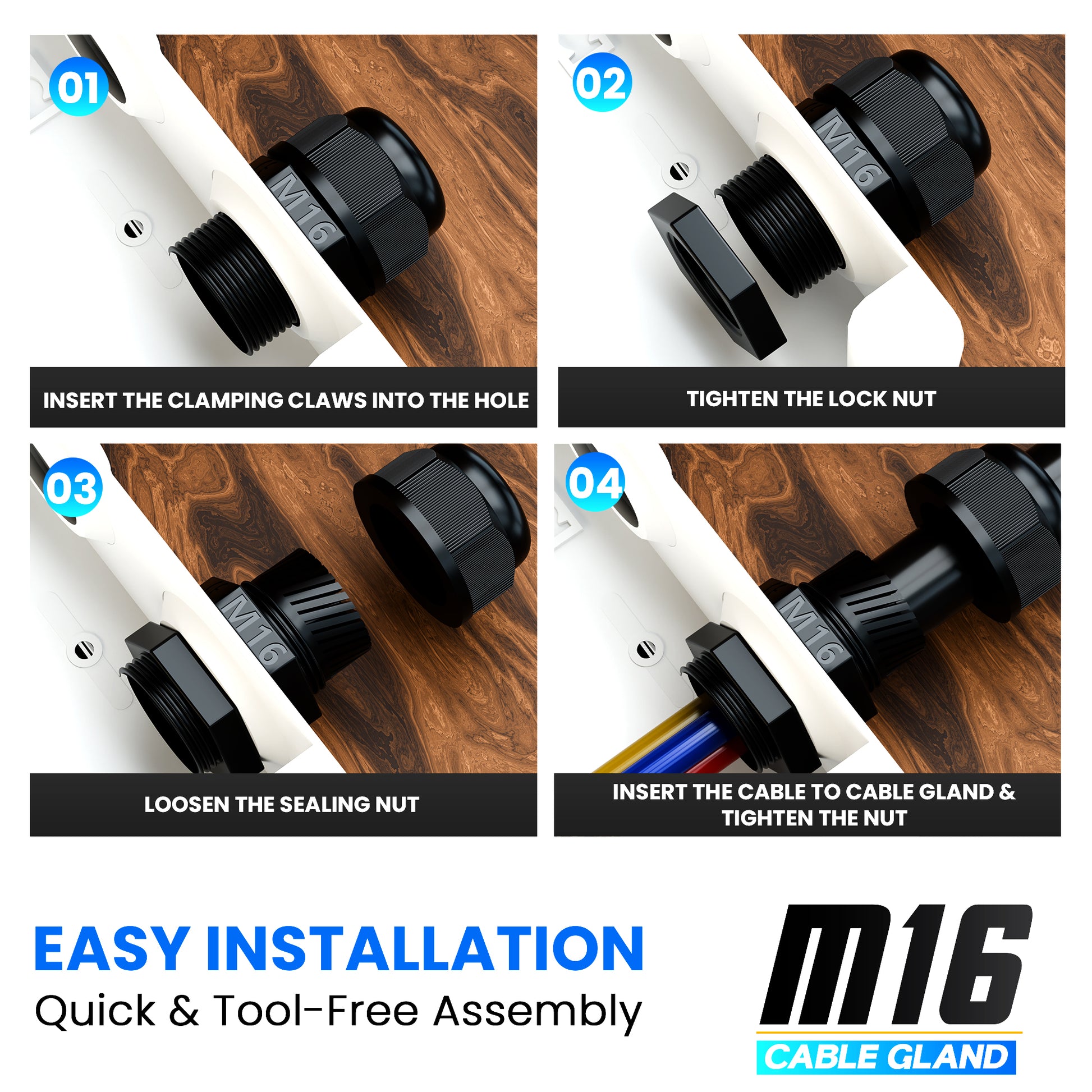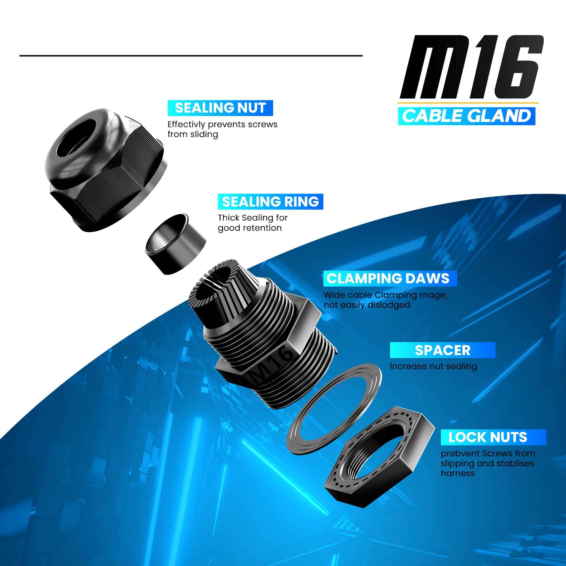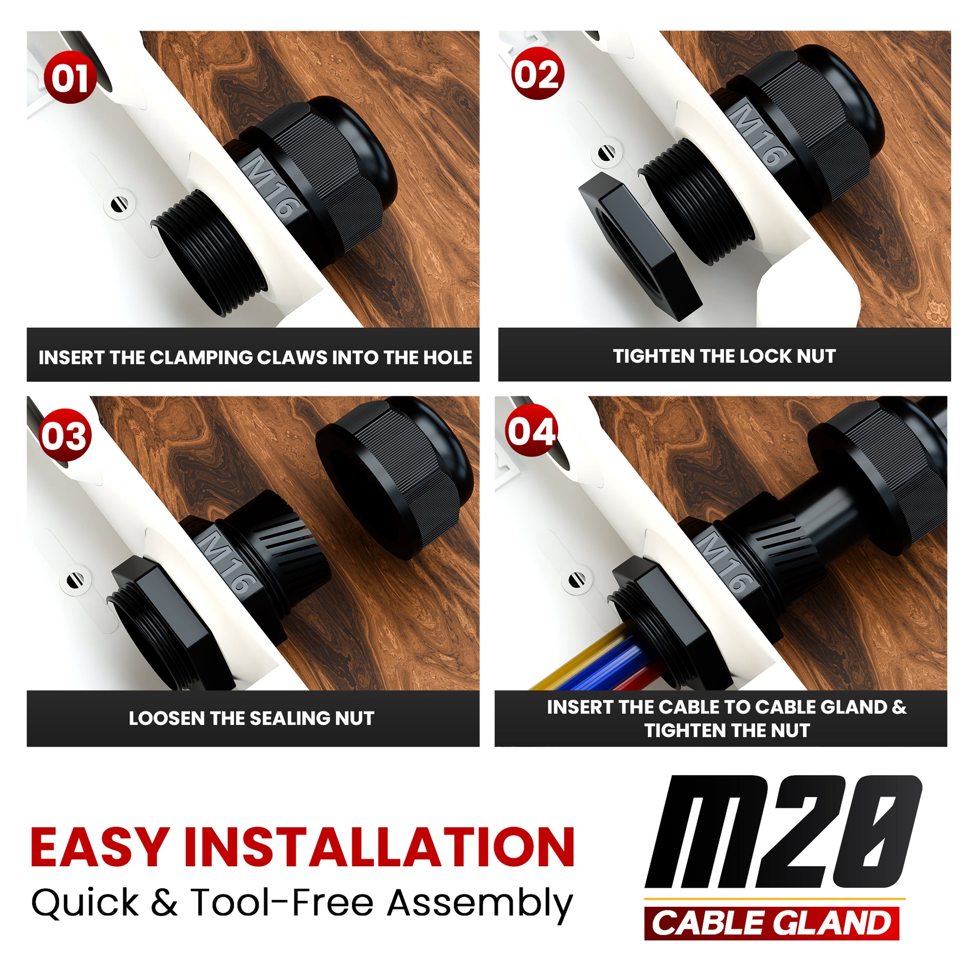 - Gland Wire Cable Connector, Made of High Quality Nylon Plastic Dustproof , Durable.