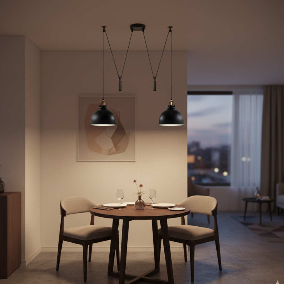 - Adjustable Height Pendant: The innovative pulley system allows for effortless, custom height adjustment (up to 2m cord length), making it perfect for both standard and high ceiling pendant light applications.