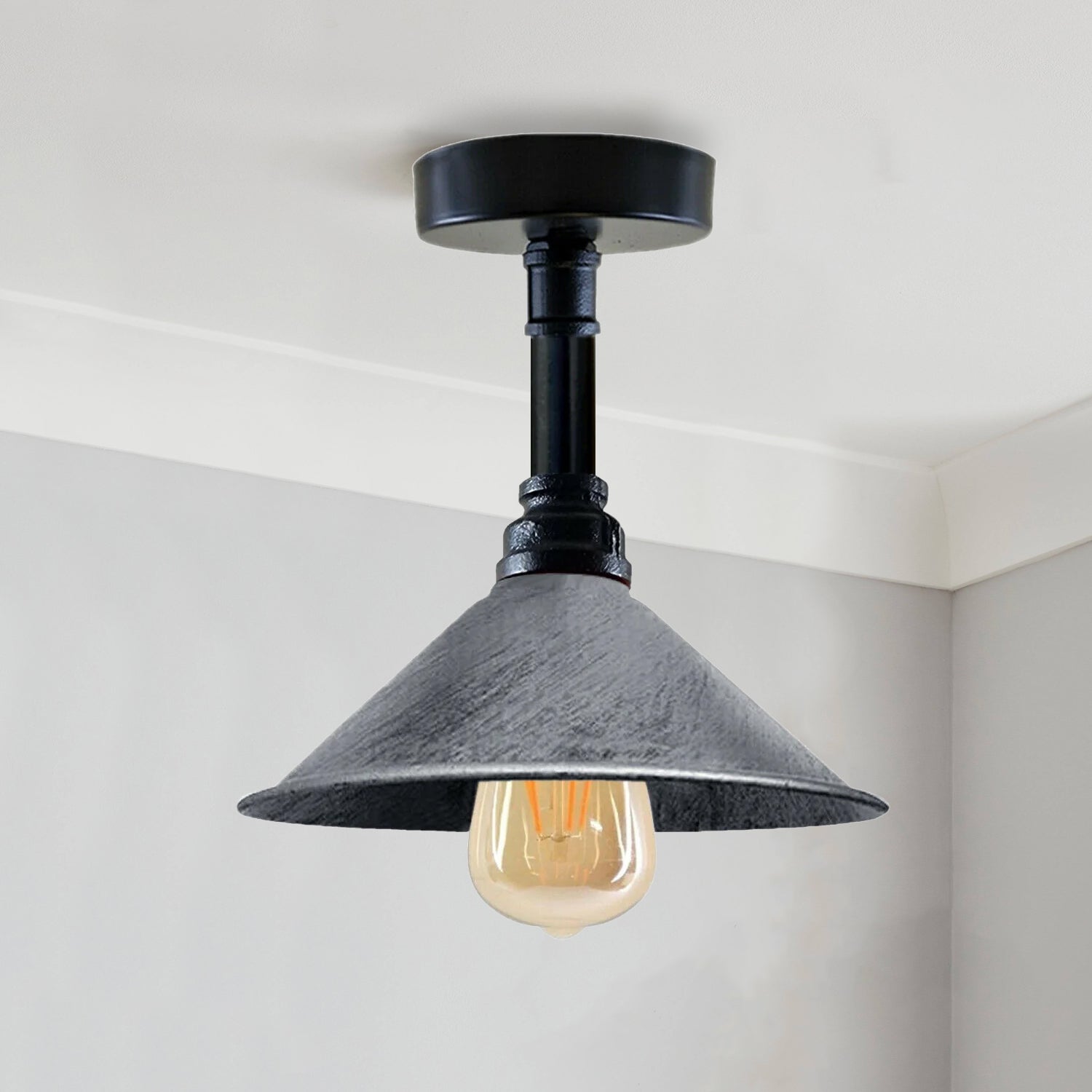 Industrial Ceiling Light Shade Vintage Metal Brushed Silver Pipe Light Retro Loft Flush Lamps~3559