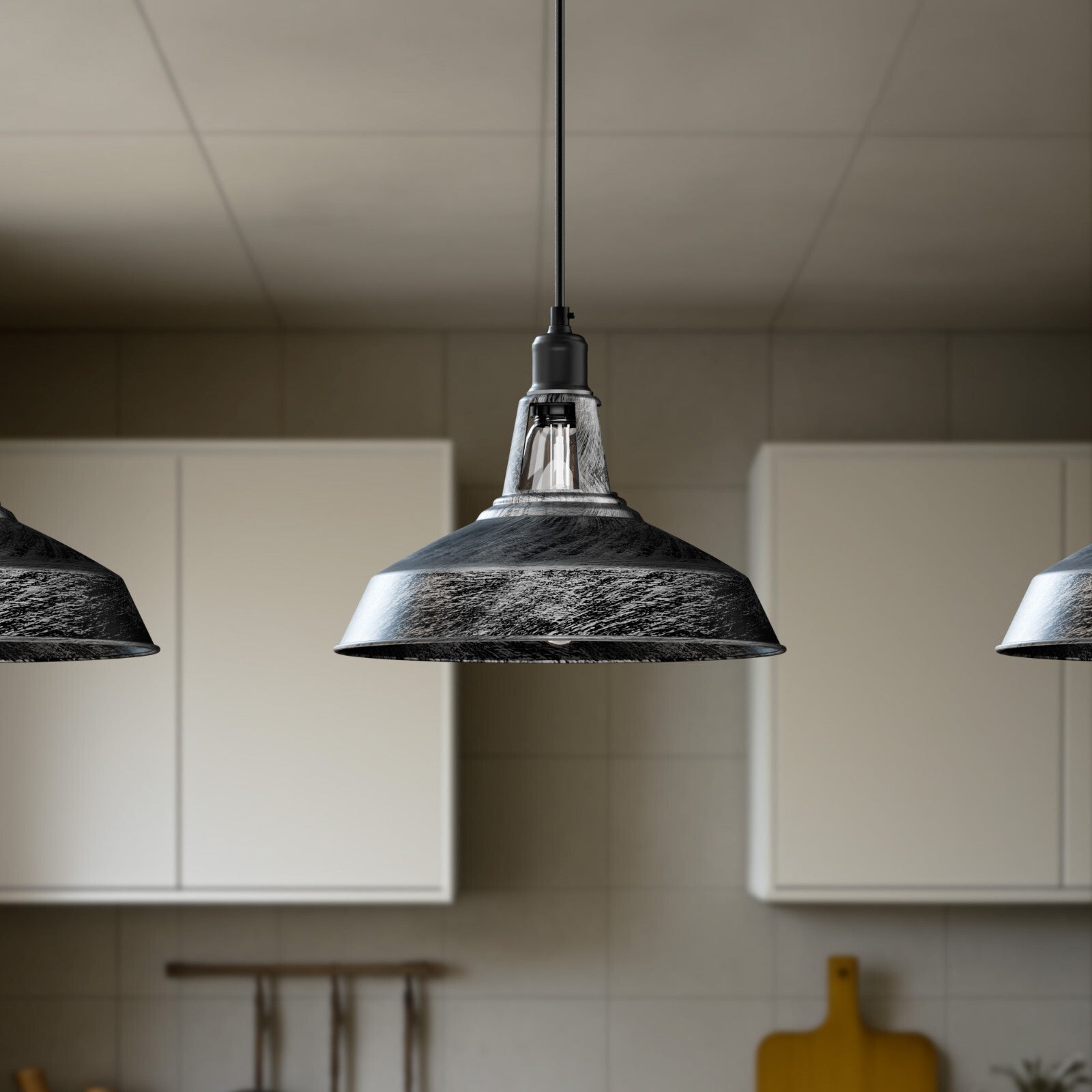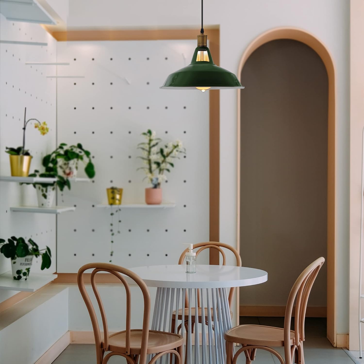 - The retro-style ceiling pendant lighting features barn slotted shade and ambient lighting effects illuminate indoor spaces beautifully.