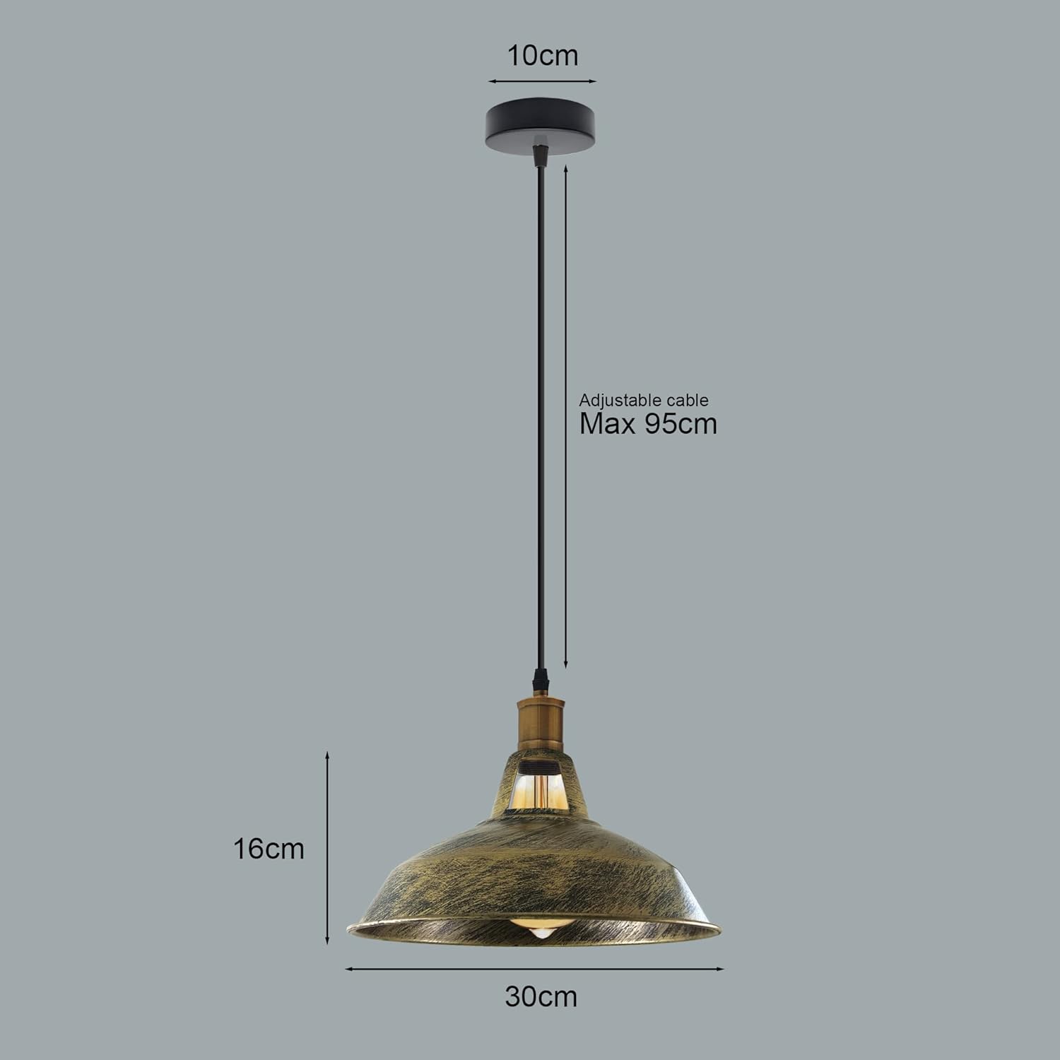 - Dimension: Ceiling Rose: 4.72'' (12cm), Shade: 11.81'' 30 cm (W), 6.29'' (16cm)(H), Pendant Wire: Adjustable 37.40'' (95cm)