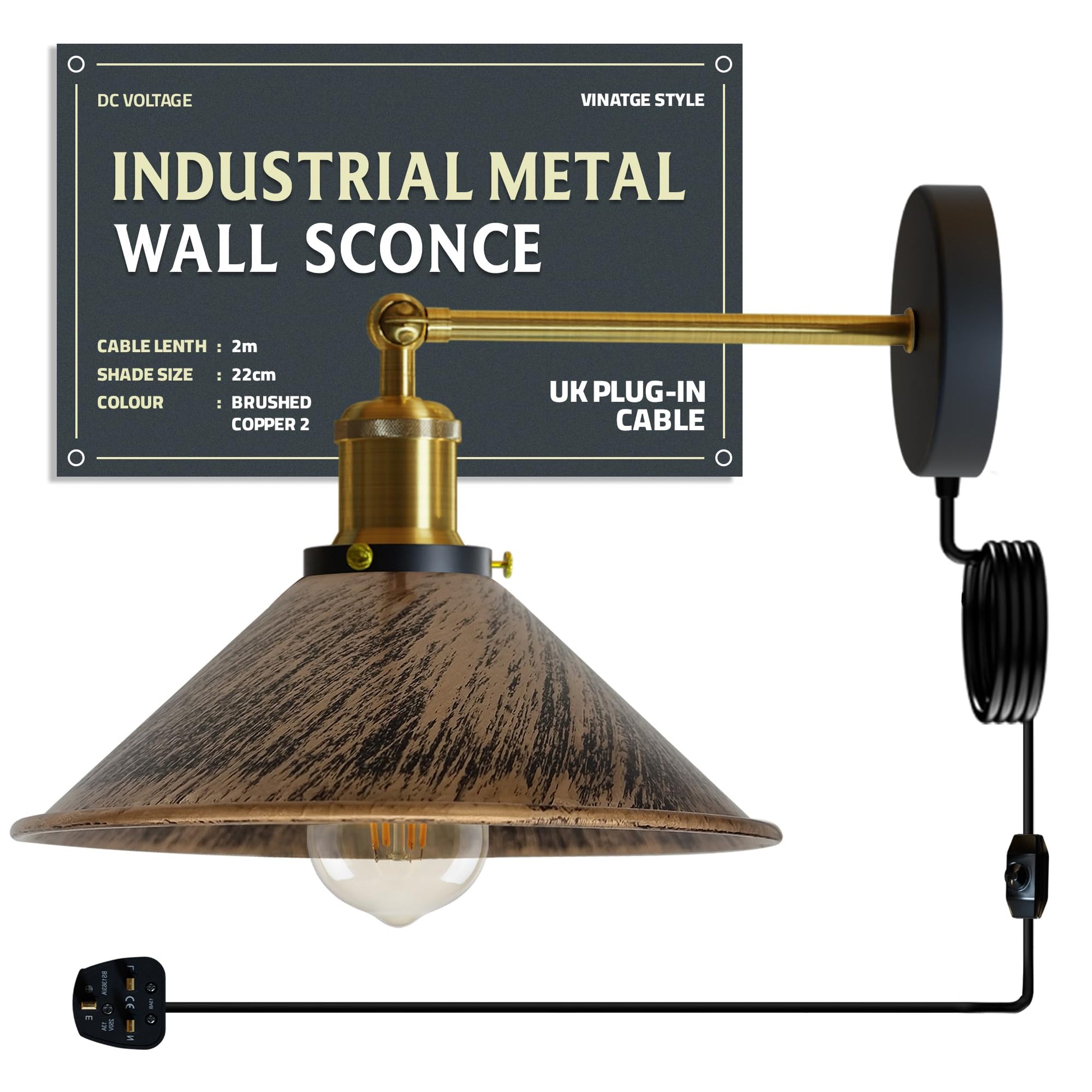 Industrial Indoor Plug in Wall Light with Dimmer ~6332