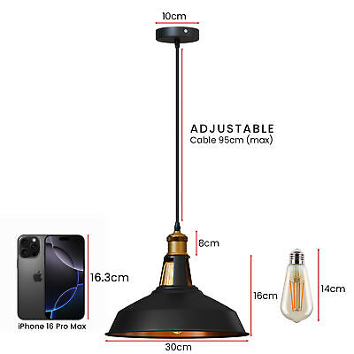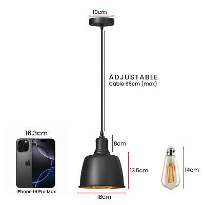 Industrial Black Inner Gold Ceiling Pendant | Easy Fit Retro Light ~ 5713