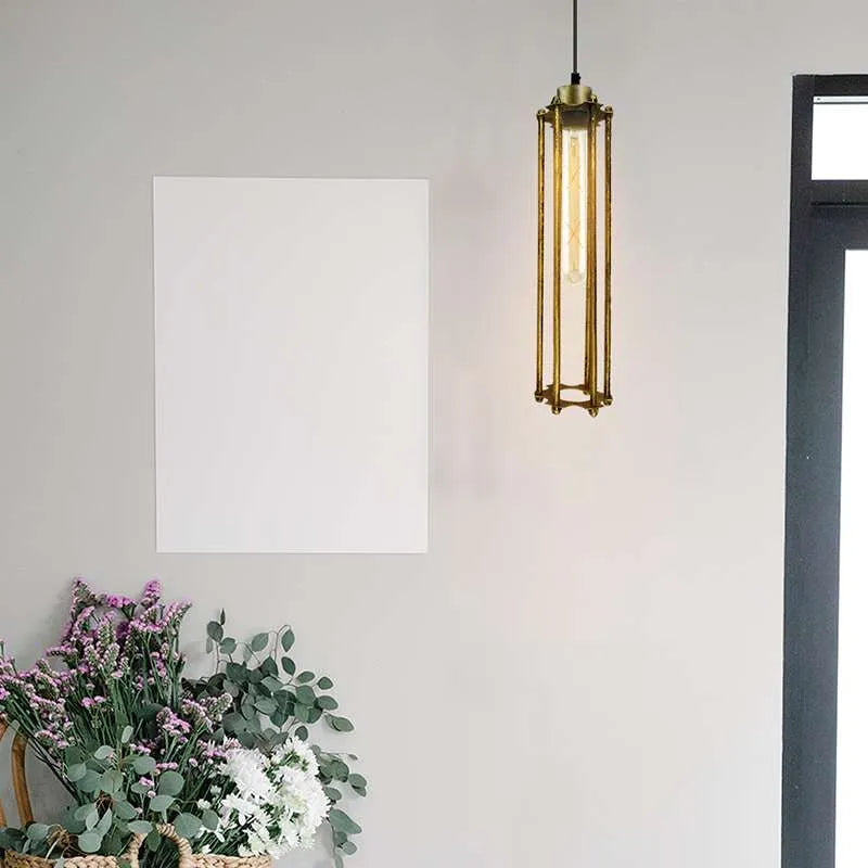 • brushed copper metal cylinder shape wire cage shade. This industrial/ vintage style metal wire cage pendant lamp is the ideal choice when it comes to both ambient and task lighting around your indoor space.
