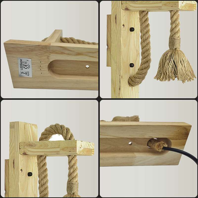 - 1 x Rustic Wooden Rope Wall Lamp