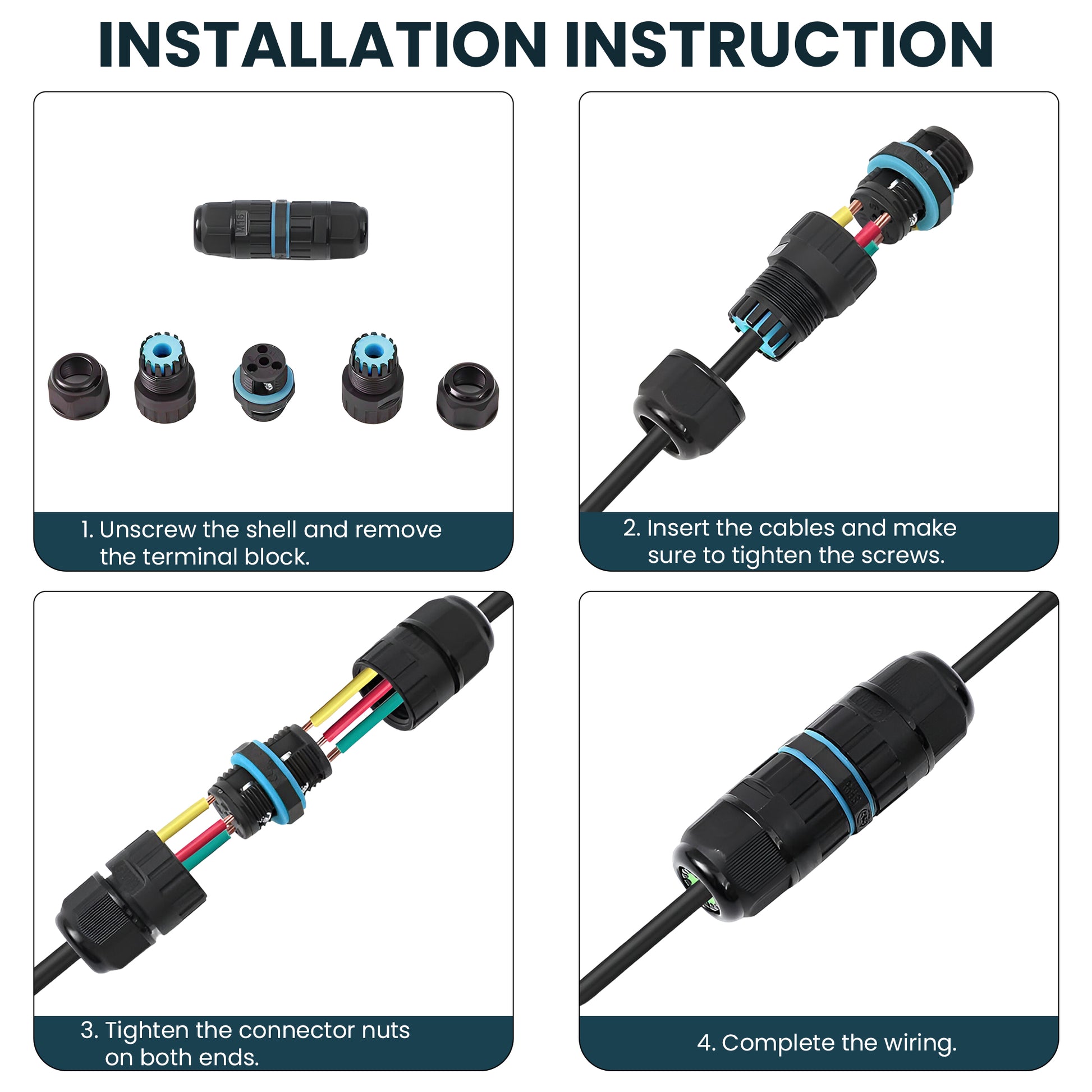 - Outdoor cable connectors are made of high-quality materials.