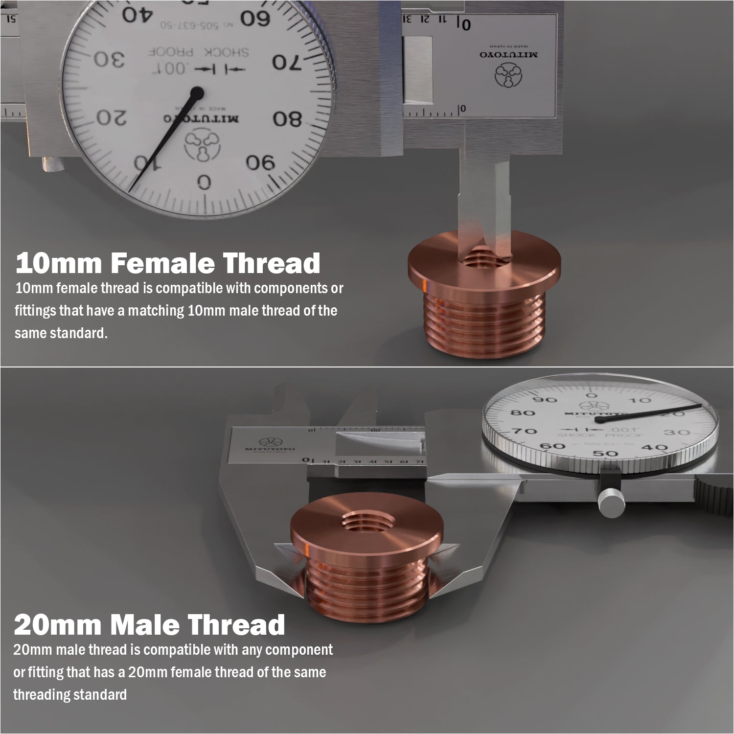 - Converts M20 male threads to M10 female threads, allowing easy integration between different pipe sizes for custom installations.