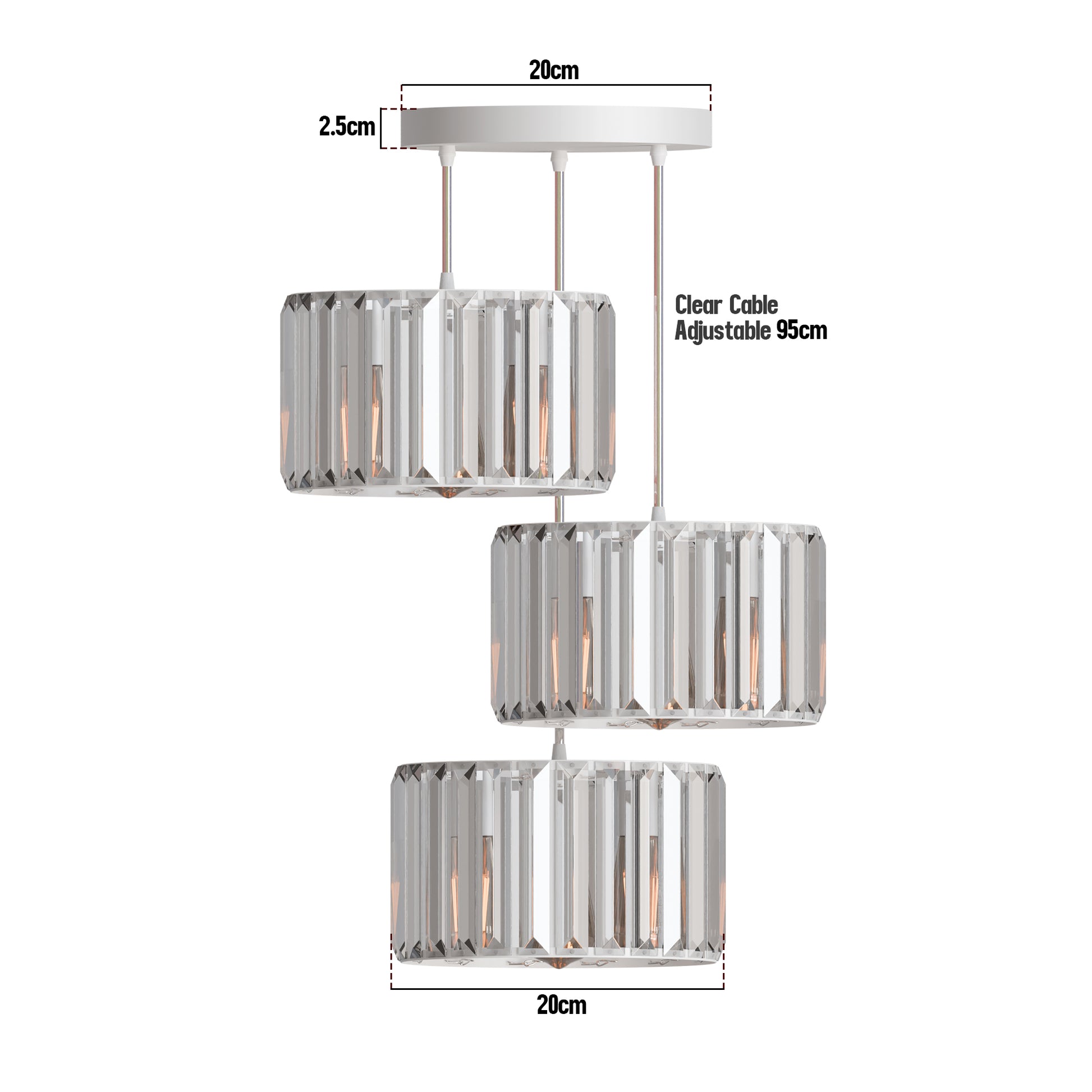 - This 3 lights white pendant light combines modern design with quality crystal elements, the sturdy framework and gorgeous effects create a beautiful and elegant appearance.