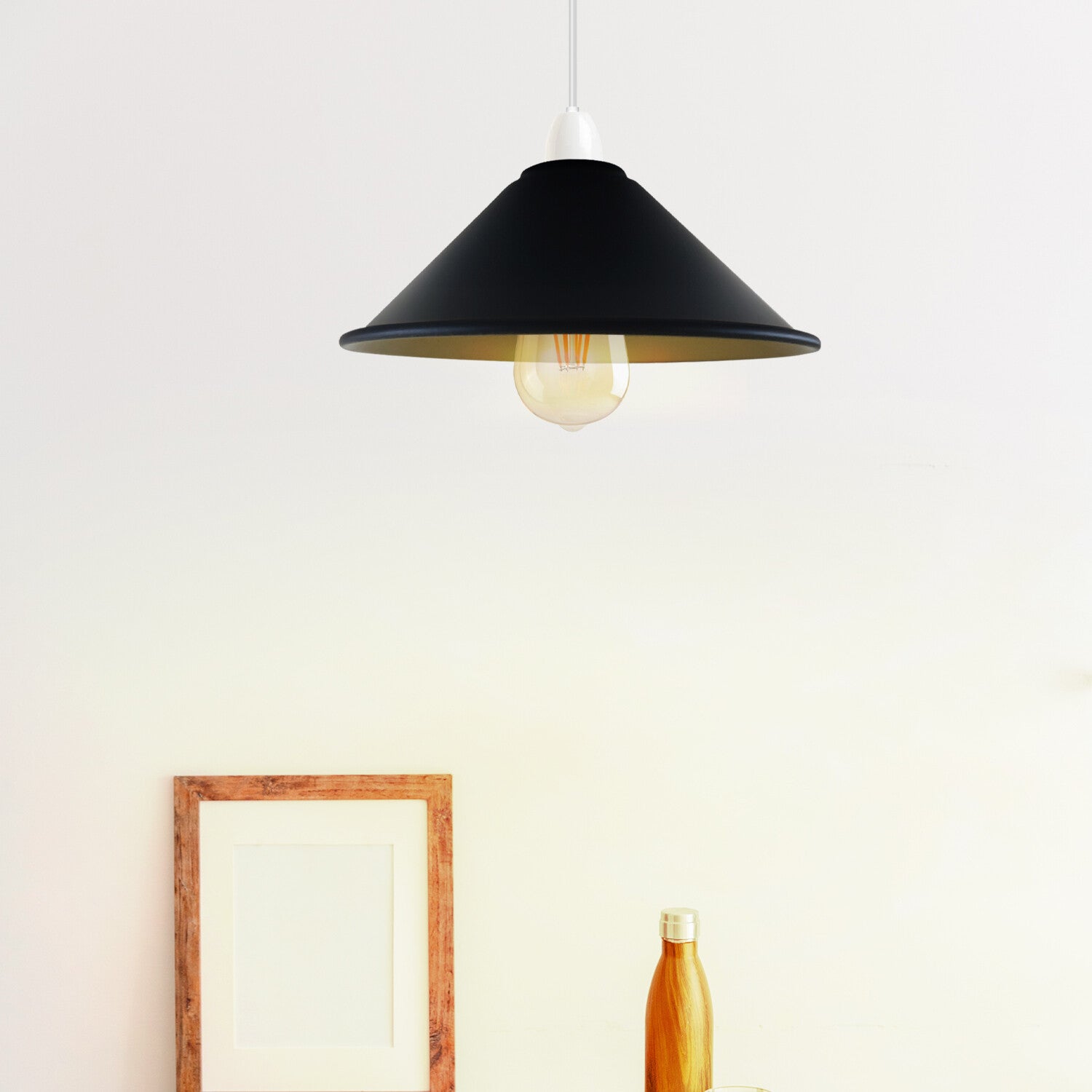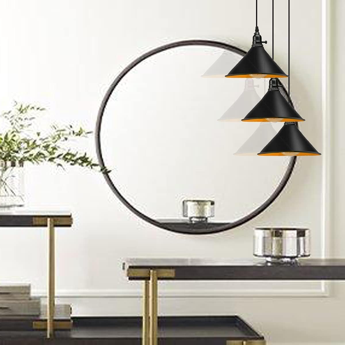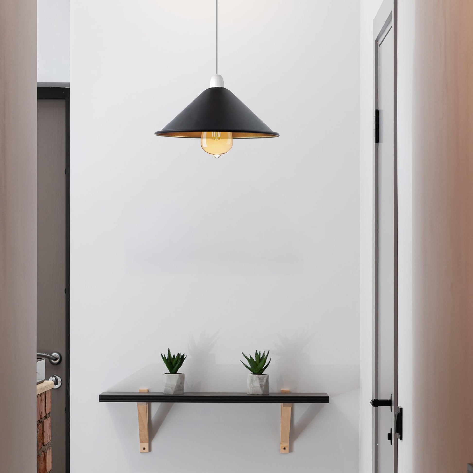 You should choose this lampshade for its stylish black metal cone design with a gold inner finish that enhances light reflection and creates a warm, elegant ambience. It is made from high-quality metal for excellent durability, rust resistance, and long-lasting colour retention. The easy-fit E27 compatibility allows quick installation onto existing pendant fittings without rewiring or tools. Its compact and versatile size makes it ideal for kitchens, dining areas, bedrooms, cafés, bars, restaurants, and modern living spaces, making it a perfect choice for both residential and commercial interiors seeking a modern industrial lighting style.Attribute |
