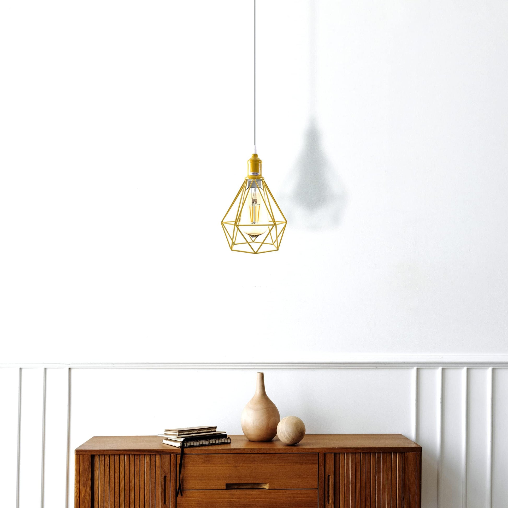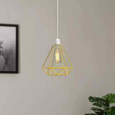 Yellow Diamond Cage Pendant Lamp Shade Metal Wire Ceiling Light Fixture ~1900