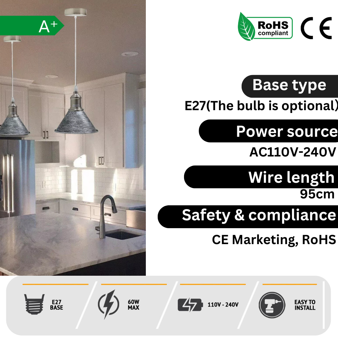 E27 lamp base, you can choose any bulbs with the E27 interface as you want.