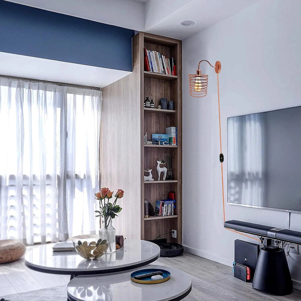 Add timeless charm and functional elegance to your space with this Retro Industrial Wall Sconce Light in a stunning rose gold finish. This plug-in wall lamp combines the best of vintage style and modern convenience, perfect for bedrooms, hallways, reading nooks, living rooms, or home offices.